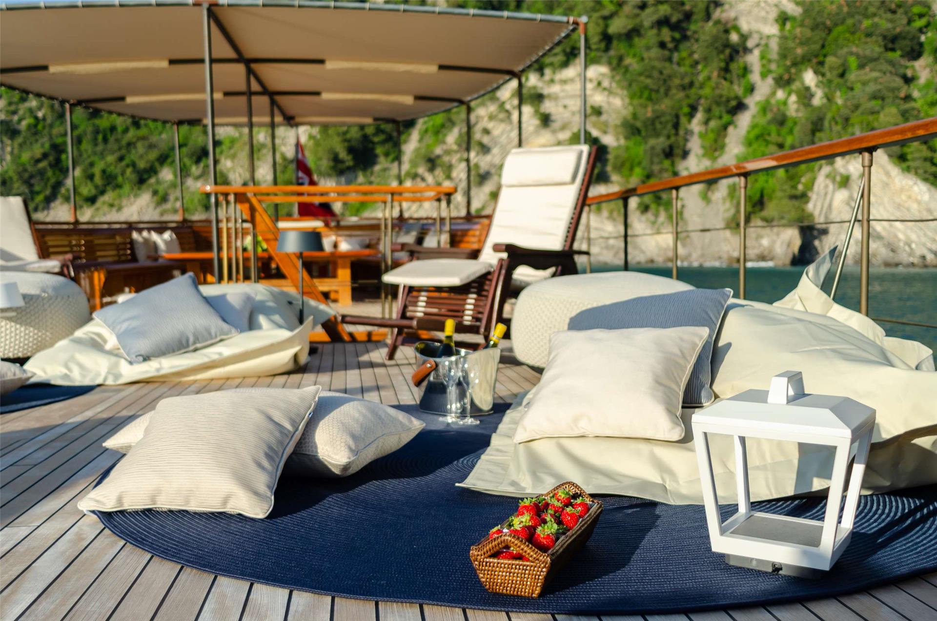 OVER THE RAINBOW can accommodate up to 11 guests across 4 staterooms.