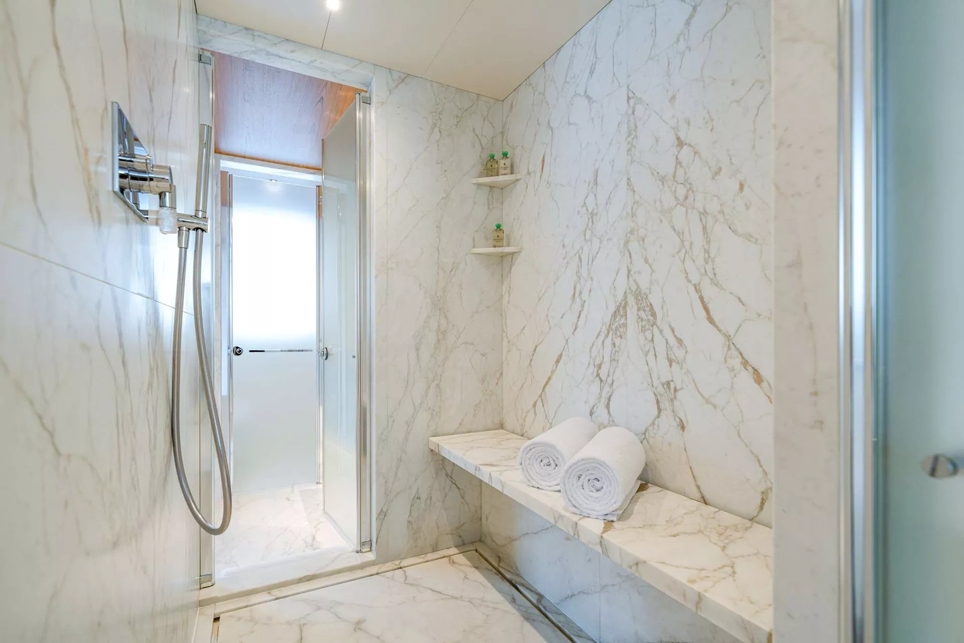 ALLURIA offers luxurious accommodation for up to 10 guests across 5 beautifully appointed suites. The layout includes a full-beam master suite located on the main deck, two VIP cabins, one convertible cabin that can be configured as a double or twin, and one dedicated twin cabin.