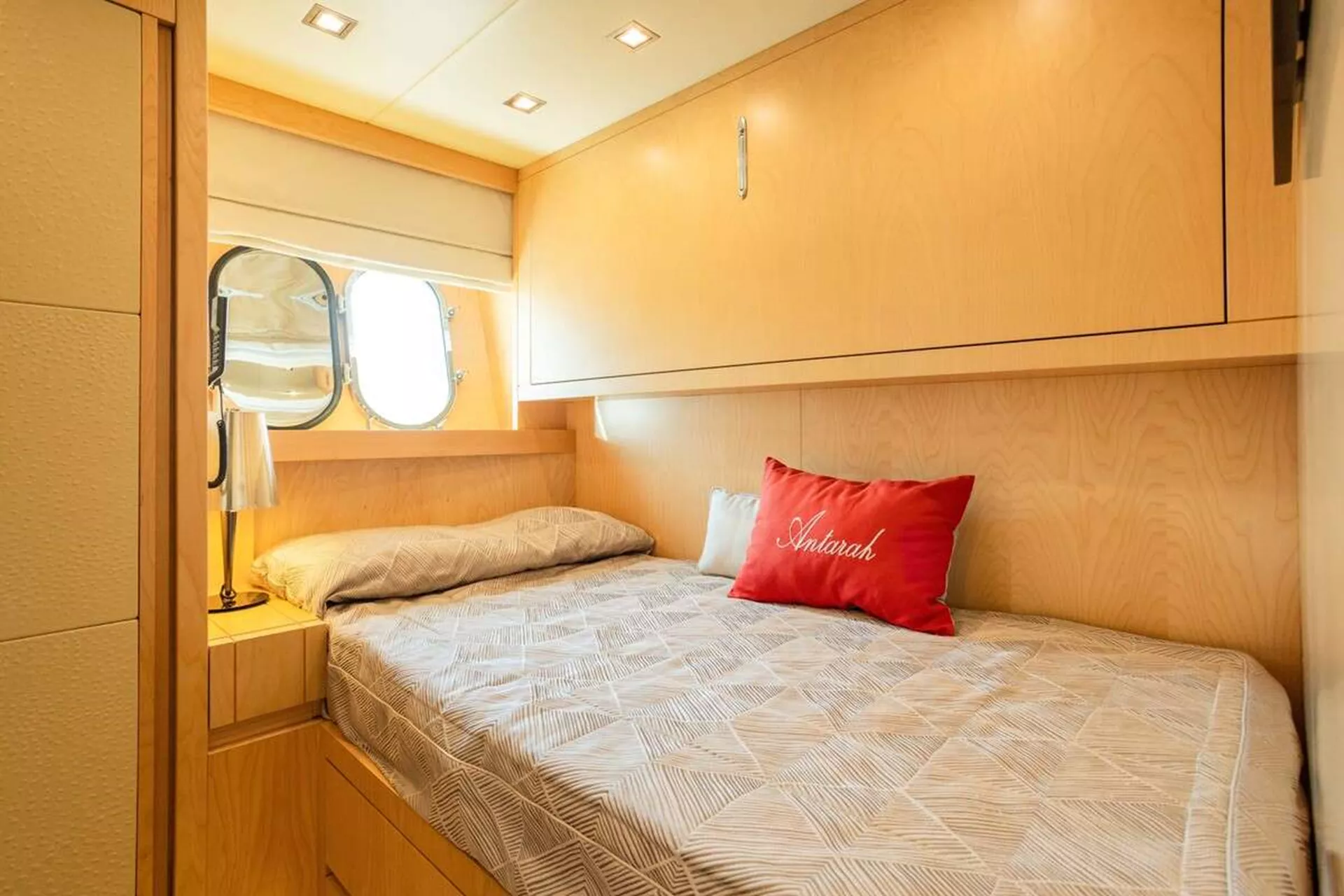 Antarah provides elegant and spacious accommodation to up to 9 guests in 4 well appointed cabins all located on the lower deck: one Master cabin, one VIP cabin, one Double cabin with pullman bed and one Twin cabin with 2 single beds.