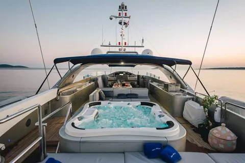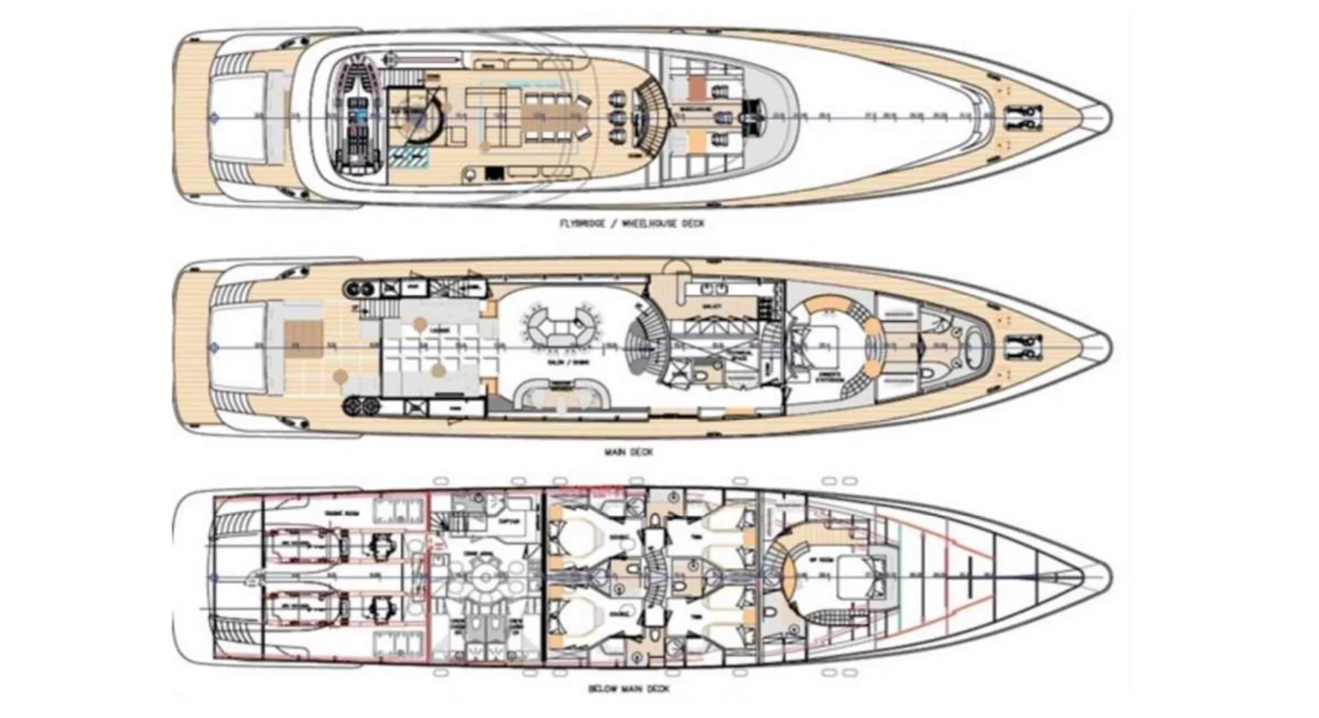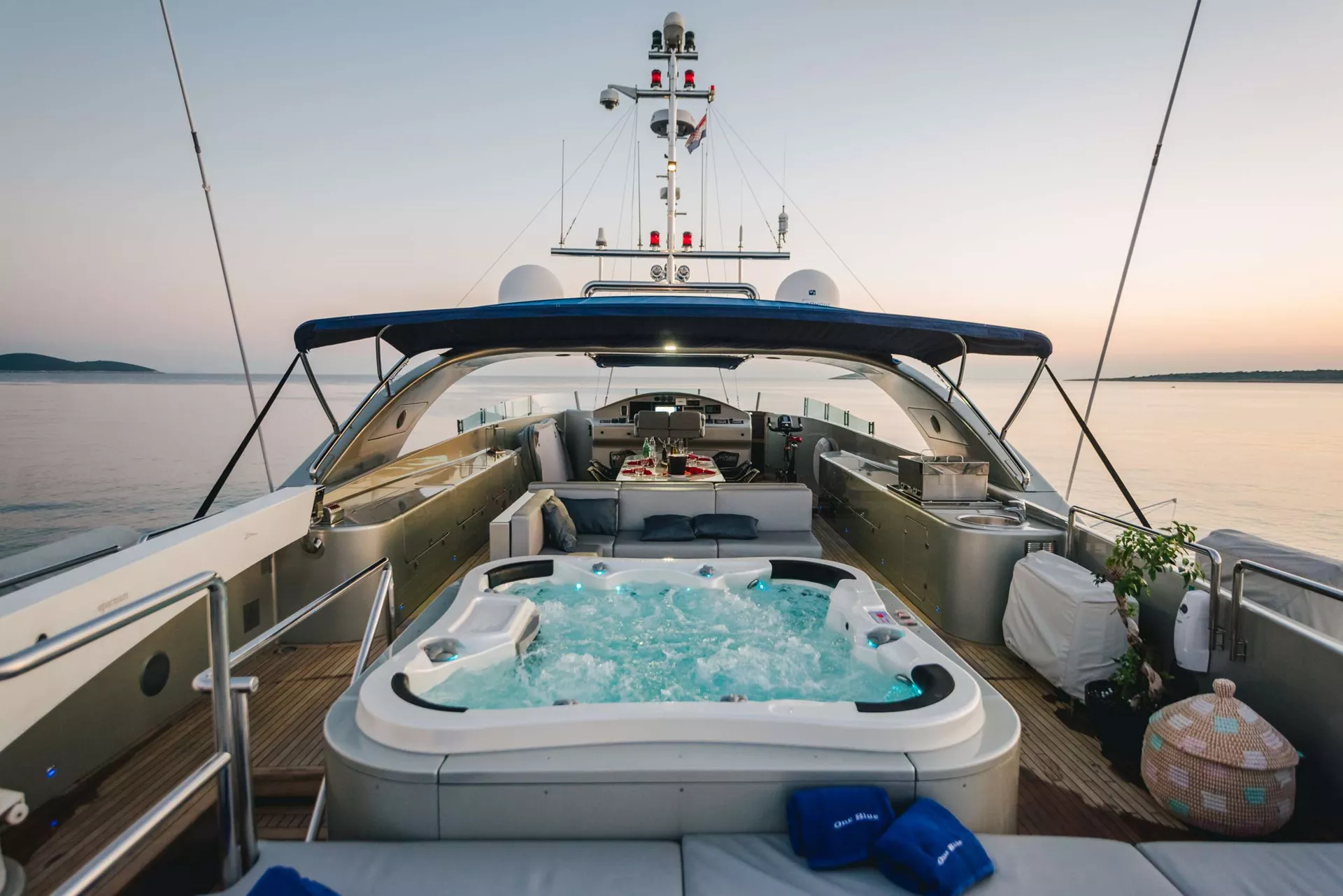 One Blue's interior layout sleeps up to 12 guests in 6 rooms, including a master suite, 1 VIP stateroom, 2 double cabins and 2 twin cabins. She is also capable of carrying up to 6 crew onboard to ensure a relaxed luxury yacht experience.