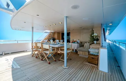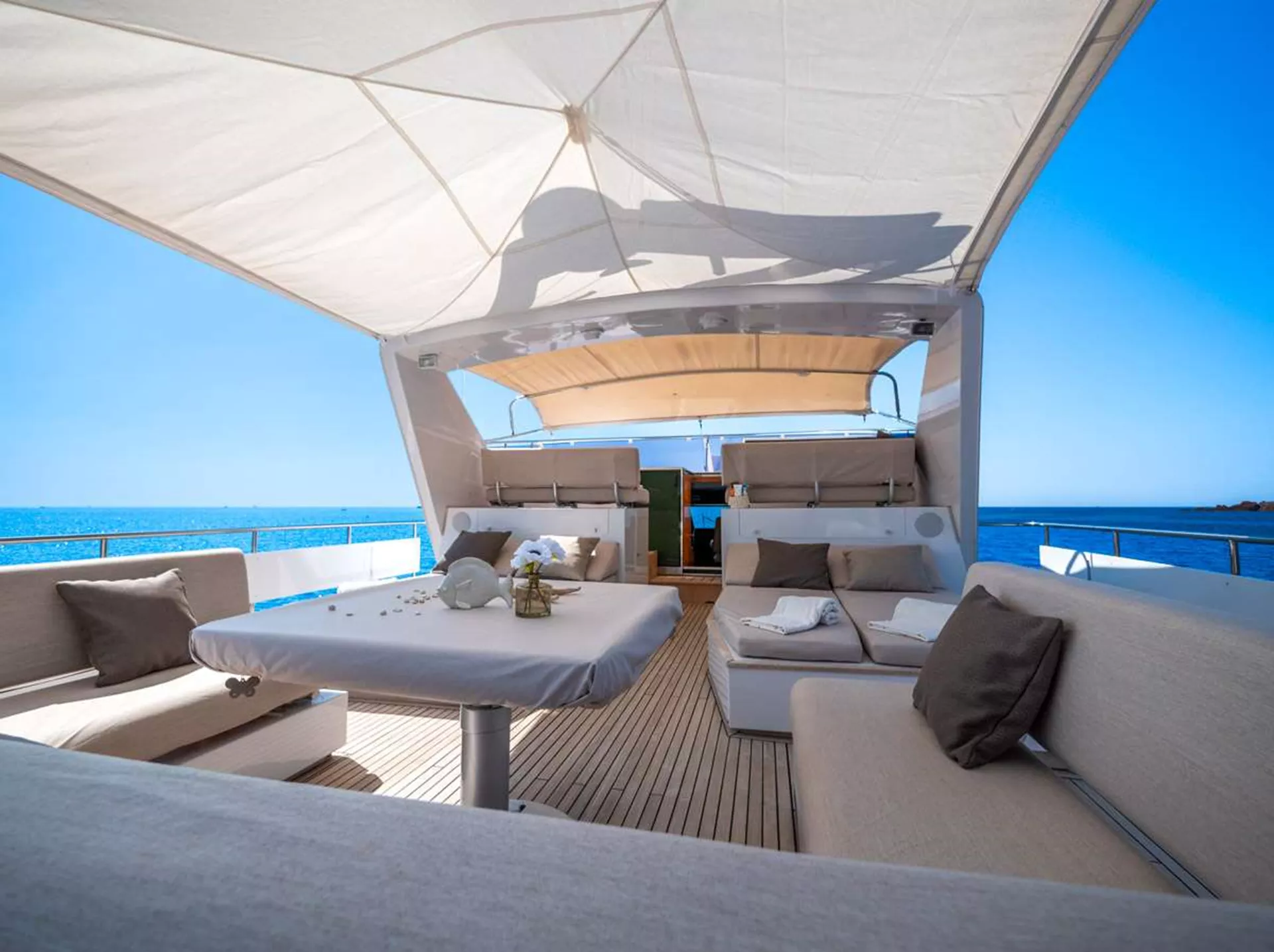 SUNLINER X has her own tent for the aft deck and part of the flybridge to be used during static charters as well as 2 heaters