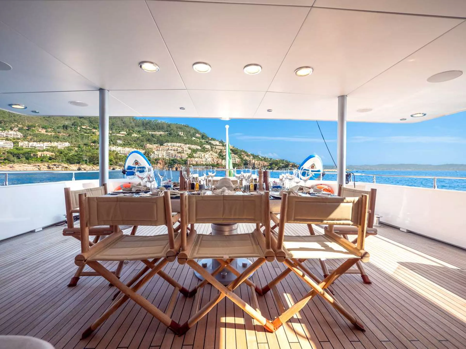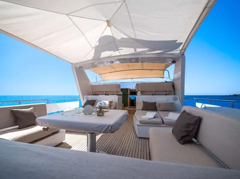 loungers and an intimate dining space on the flybridge and a generous aft deck ideal for cocktails