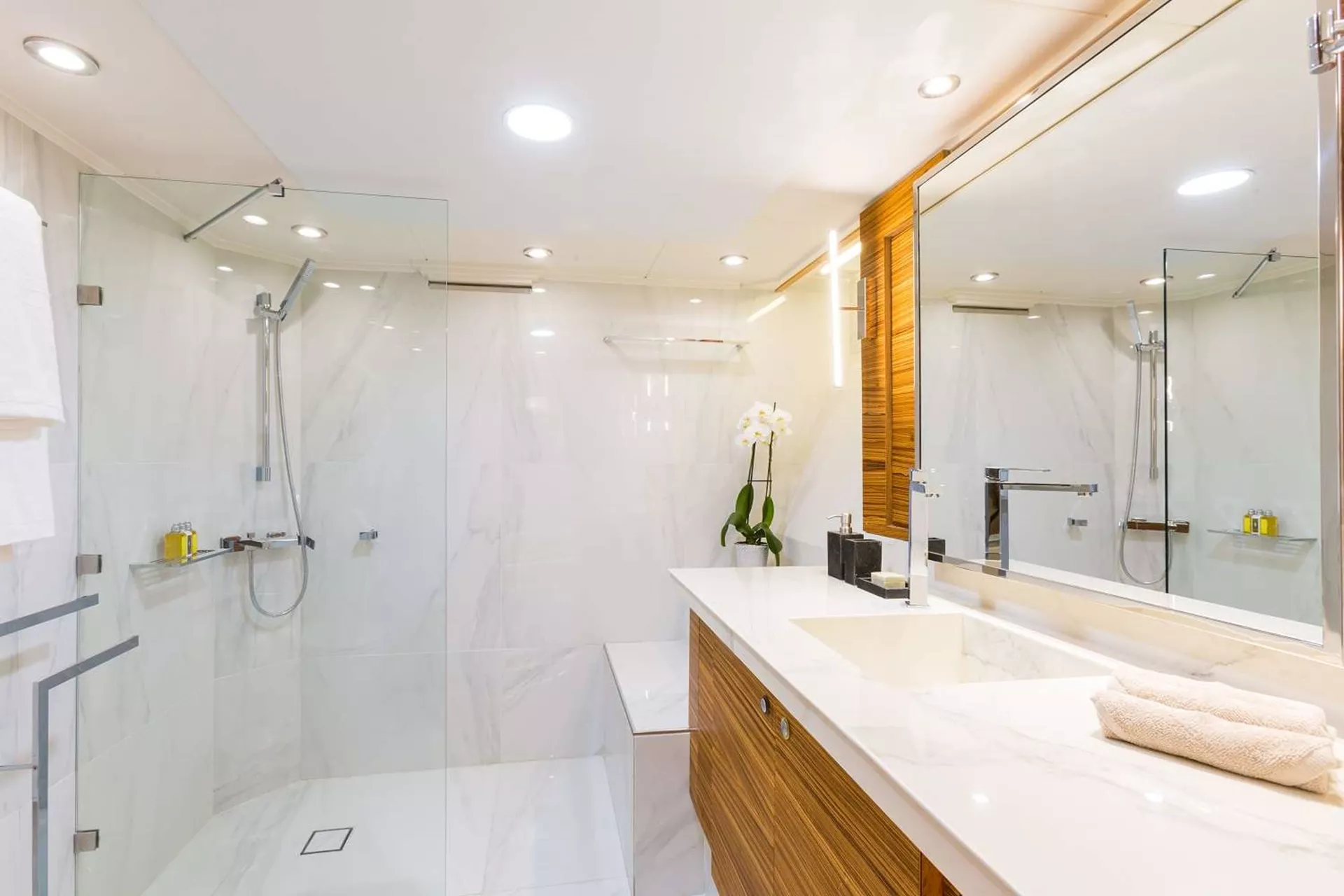 - 1 Master 48sqm with independent saloon and a sofa/bed, which can be converted into a 6th cabin and has separate WC