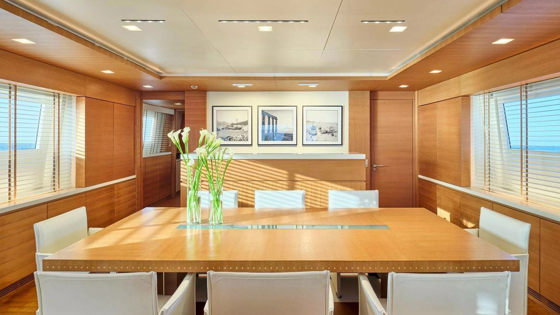 Stabilizers underway, bow thruster, stern thruster, 2 watermakers, 3 icemakers, BBQ, safe box in Master and VIP cabins, laundry facilities, alarm and fire detectors system and closed circuit television system. Air-conditioning throughout. HeartSine Defibrillators.