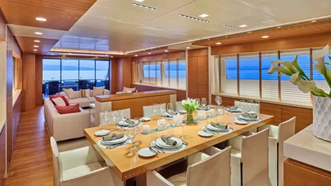 KINTARO, named after the Japanese warrior renowned for his superhuman strength and known as the "Golden Boy," showcases a striking exterior profile infused with distinctive Italian elegance. Accommodating up to 12 guests in a rare six-cabin layout for a yacht of her size, she and her dedicated crew of seven offer the ultimate comfort for a Mediterranean charter. She also boasts desirable outdoor features including large shaded areas for alfresco dining, a BBQ, an outdoor home cinema, and a toy-packed beach club. Kept in excellent condition, she is sure to be a fantastic platform for an unforgettable charter.