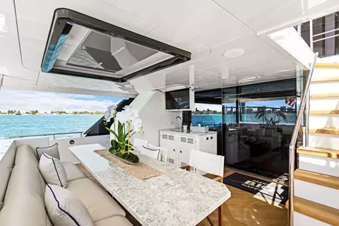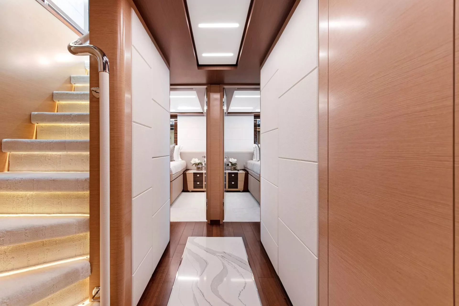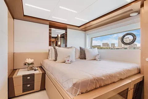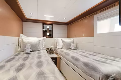 On deck master stateroom with 4 cabins below. 2 Queen beds and 2 twin beds that join together.