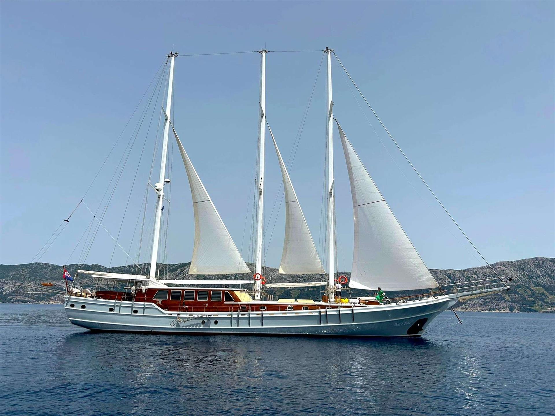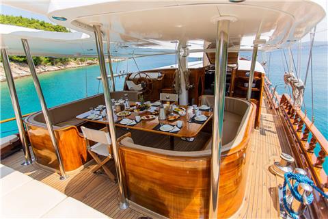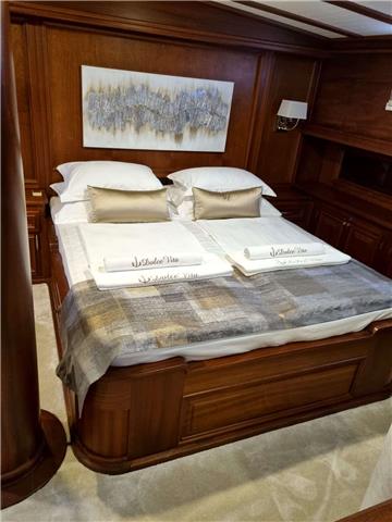 Since its complete renovation in 2015, DOLCE VITA has received thoughtful and significant updates each winter from her owners. This charming gulet can host up to 10 guests in five well-appointed en suite cabins. Inside, you'll find a stylish decor in the salon, complemented by the warm touch of natural wood that creates a welcoming environment. The cabins are roomy and beautifully designed, providing plenty of space.