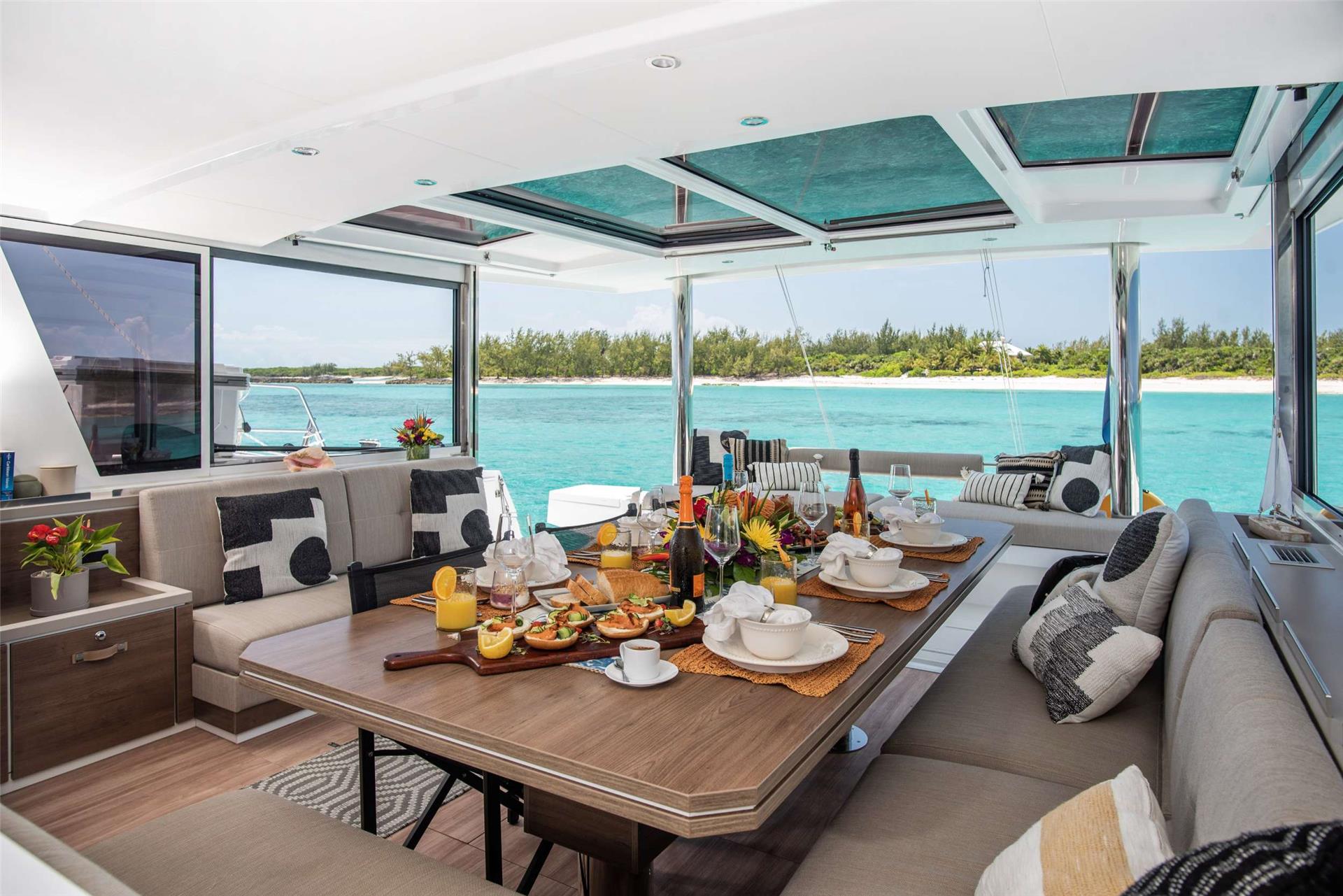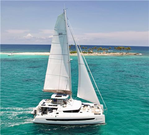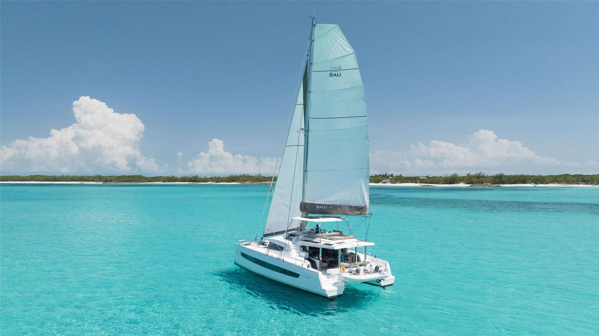 The luxurious sailing catamaran, LOCATION, is a superb example of what Bali can design. As you step on board in to a beautifully appointed cockpit, complete with teak floors and dining table for ten and a comfortable lounging bench, you immediately realize what a unique charter experience you are about to have. As you make your way up to the flybridge you’ll be blown away by the amazing turquoise water with 360° views and enjoy the up-close view of the sails. It’s also a great place to read your favorite book or a favorite spot for appetizers and cocktails at sundown. The main salon is comfortable and luxurious with open spaces and natural light fed by all the windows surrounding you. All guest cabins are spacious with large windows and offer plenty of natural light. For your comfort, every cabin offers queen sized beds and private baths with dedicated shower stalls as well as individual cabin A/C control. The high level of finishing throughout every cabin reflects the luxury that you would expect from a yacht of this caliber. With all the different areas, LOCATION is show-stopper and has enough amenities for everyone to enjoy!