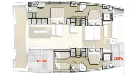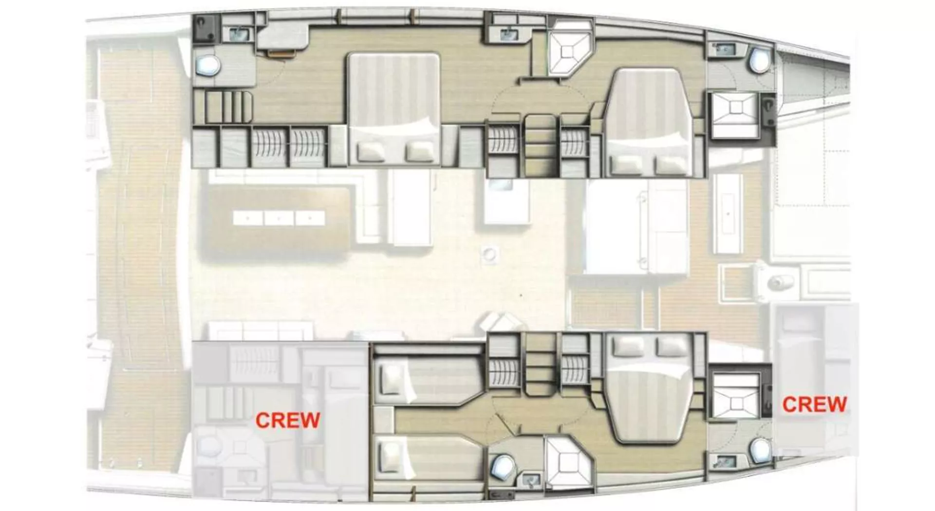 Guests: 3 Queen, 1 twin + 4 WCs, 1 front peak + WC,