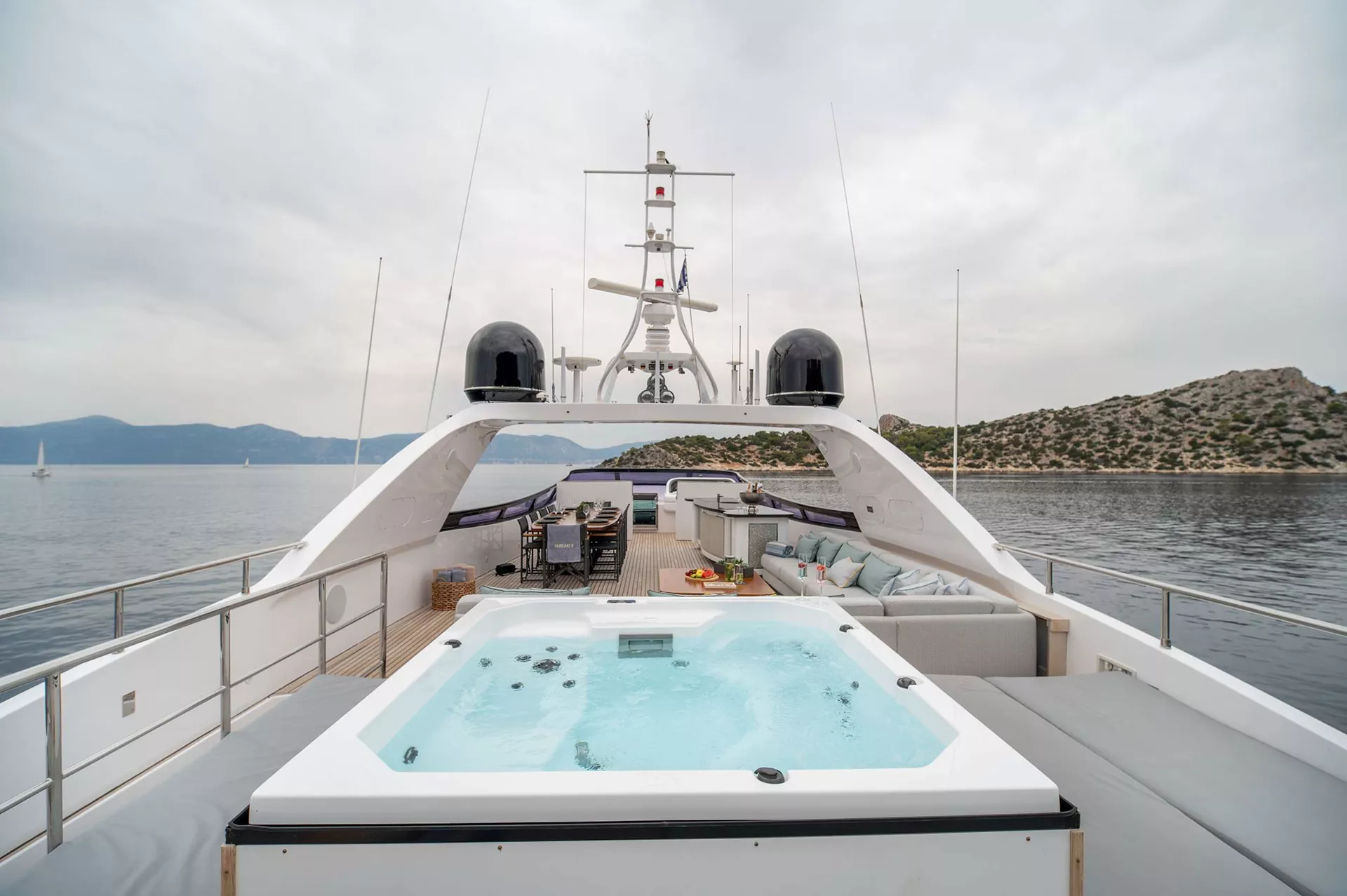 5x TV’s 32’ Guest Cabins & Tv 55’ in the Main deck, Salon Stereo Surround Sound System, Cosmote TV, Netflix, 5 stages HEOS App, Office TV 32, Jacuzzi at Fly Bridge, Upper deck with full shading option, BBQ