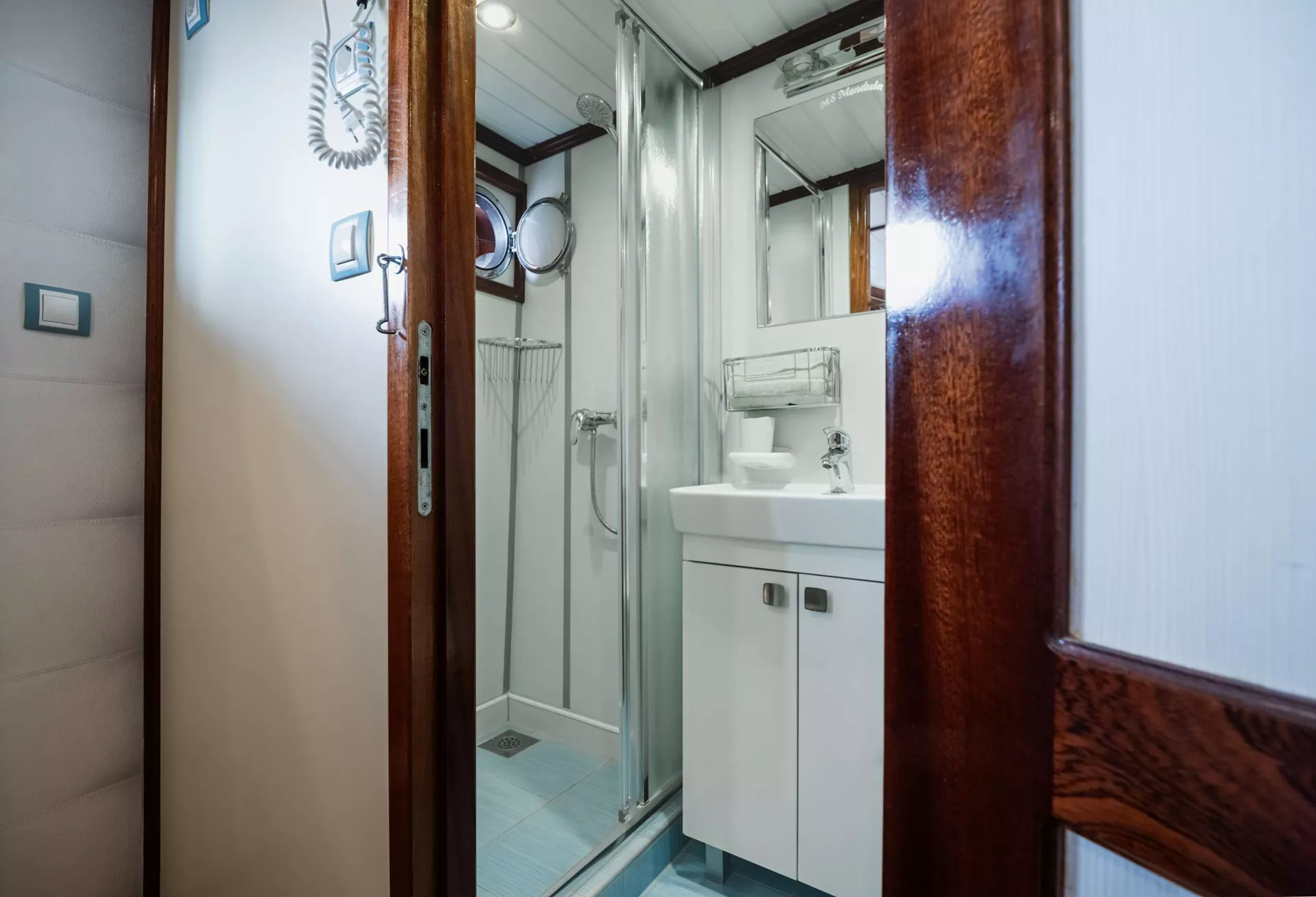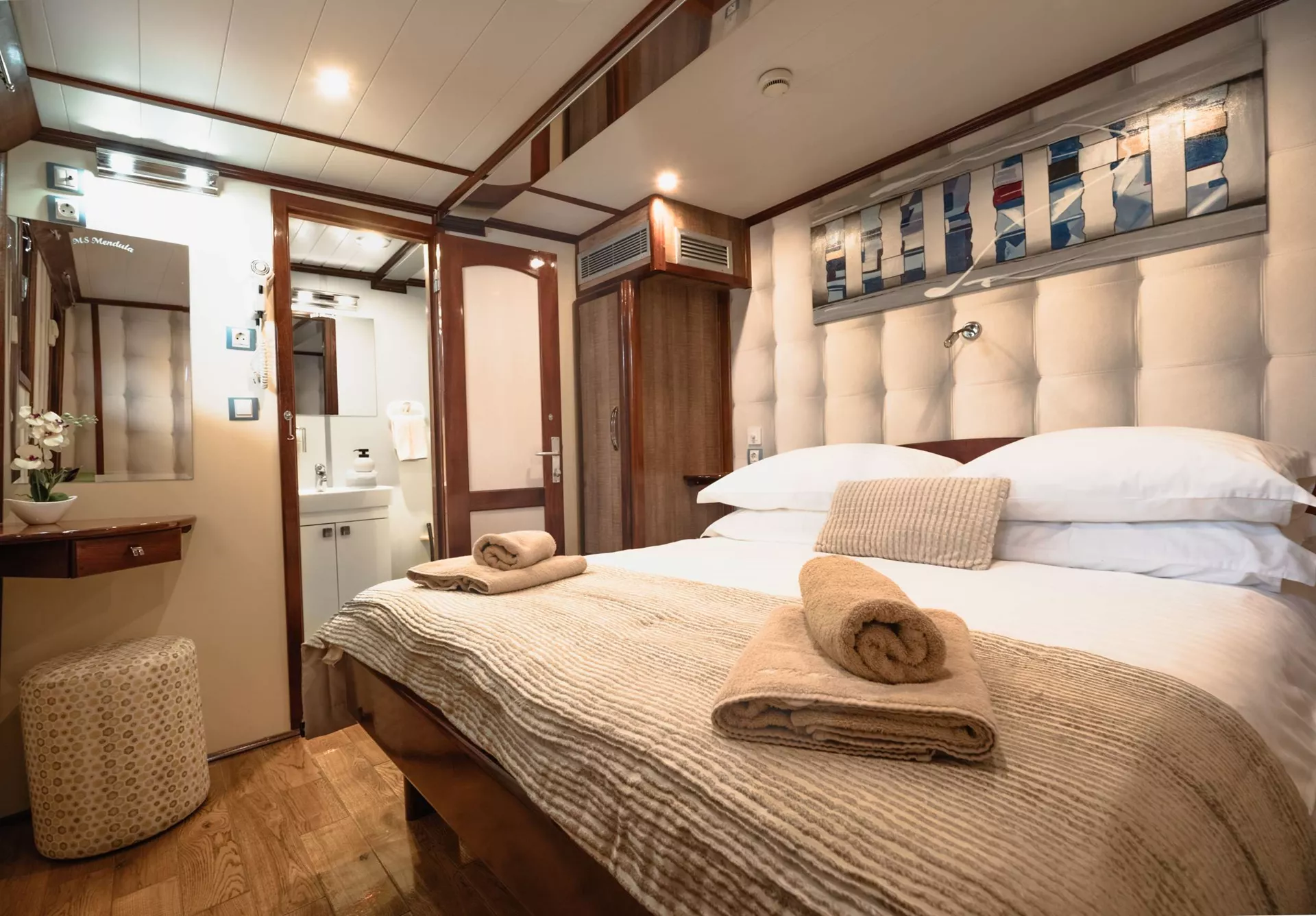 Main deck - cabins 6,7 and 8, cabin 6 is two single beds, cabins 7 and 8 are double bed cabins