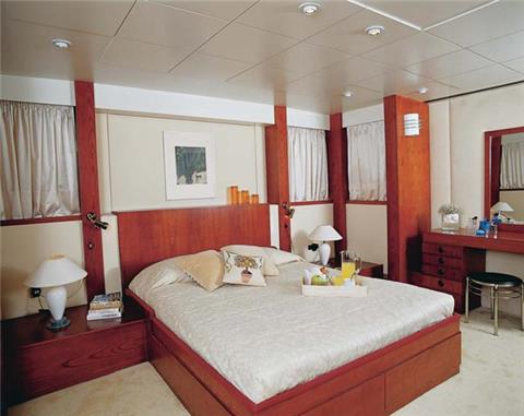 This beautiful yacht built in 1992 provides the utmost of luxury, pleasure and safety. She accommodates 12 passengers in one master suite on main deck, one V.I.P. stateroom on upper deck, and 2 twin and 2 double guest cabins on lower deck, all with private facilities. The lounge, dining area and the main deck offer luxury and maximum comfort. On the upper deck the passengers can relax in a jacuzzi. The yacht is air conditioned throughout. Separate accommodation for her crew of 8.