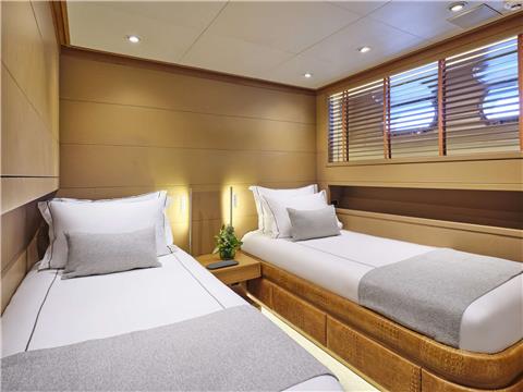 - 2 x Twin Staterooms both convertible into doubles with an additional pullman berth in each.