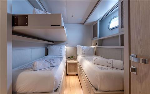 Twin mid-ship also converts for couples or can be used as a triple bunk with the pullman down.