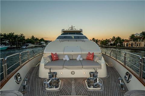 Experience the breathtaking views of Florida, the Bahamas, and New England from the numerous outdoor living spaces onboard. Take a stroll on the full walk-around deck with its high bow and relax on the upper and lower sun pads. The aft deck is perfect for entertaining, featuring a wet bar and casual dining area that can seat up to 12 guests.
