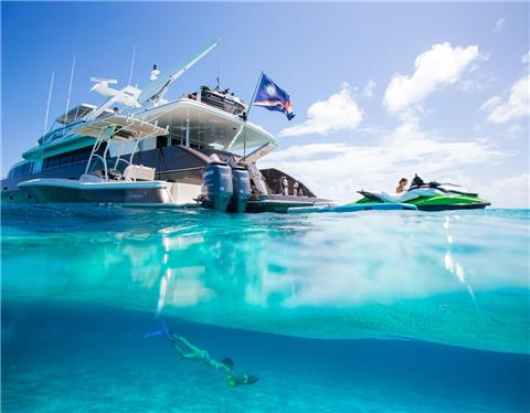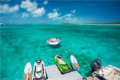 UNBRIDLED will spoil you with her vast, unparalleled selection of activities and water toys. Her towable 32-foot Boston Whaler Outrage tender with twin 300s is perfect for diving, deep-sea fishing, exploring tiny isles and beautiful ports during your charter. Spend your day on the water kicking up the waves on two brand new Jet Skis. UNBRIDLED also offers kite boarding, snorkeling and scuba diving equipment, a fly board, paddleboard and a bevy of other top-of-the-line water toys. If you can't bear to miss a day at the gym, UNBRIDLED even offers an extensive array of exercise equipment, such as free weights and TRX bands.