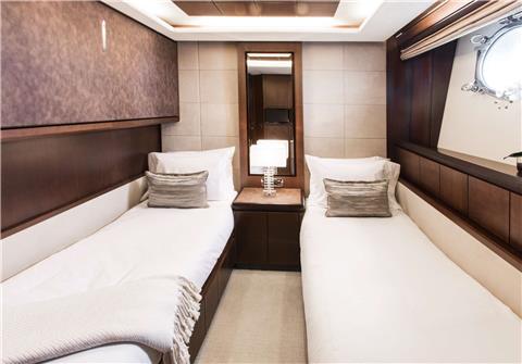 On the main deck there is a media room forward which has a convertible sofa bed (double) and a day head just opposite with w jet shower which closes off to make a private cabin. There is an additional day head on the main deck.