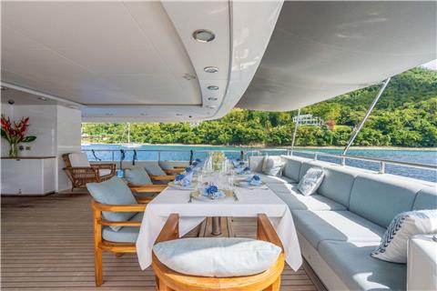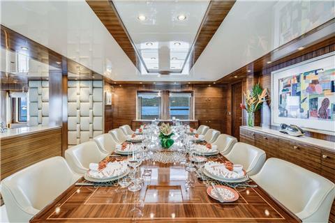 A familiar name on the charter circuit OCEANOS is now available with a 2021 refit and a new multi-national crew. OCEANOS offers over 300 square meters of deck space and many interior gathering areas. A tasteful Studio Vafiadis interior is fitted with Italy's finest woods, marble and fabrics, creating an environment of refined elegance and sophistication. Her sweeping sundeck boasts large lounging beds and Jacuzzi as well as a bar and two long dining tables, perfect for those lingering meals under the stars. Accommodations are comfortably set for 12 guests in 7 well-appointed staterooms including a private owner's suite which spans two thirds of the upper deck. Further accommodations include a VIP King stateroom and adjoining twin cabin on the main deck, whilst on her lower deck you will find an additional 2 Queen and 2 twin Staterooms with Pullmans.