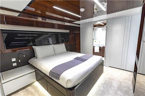 Accommodation is for 11 guests in 5 staterooms, all are finished in dark rosewood and neutral white tones. Luxurious white carpeting throughout.