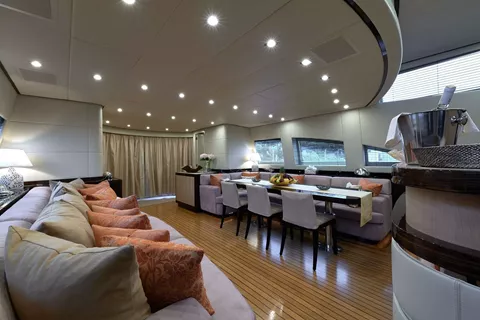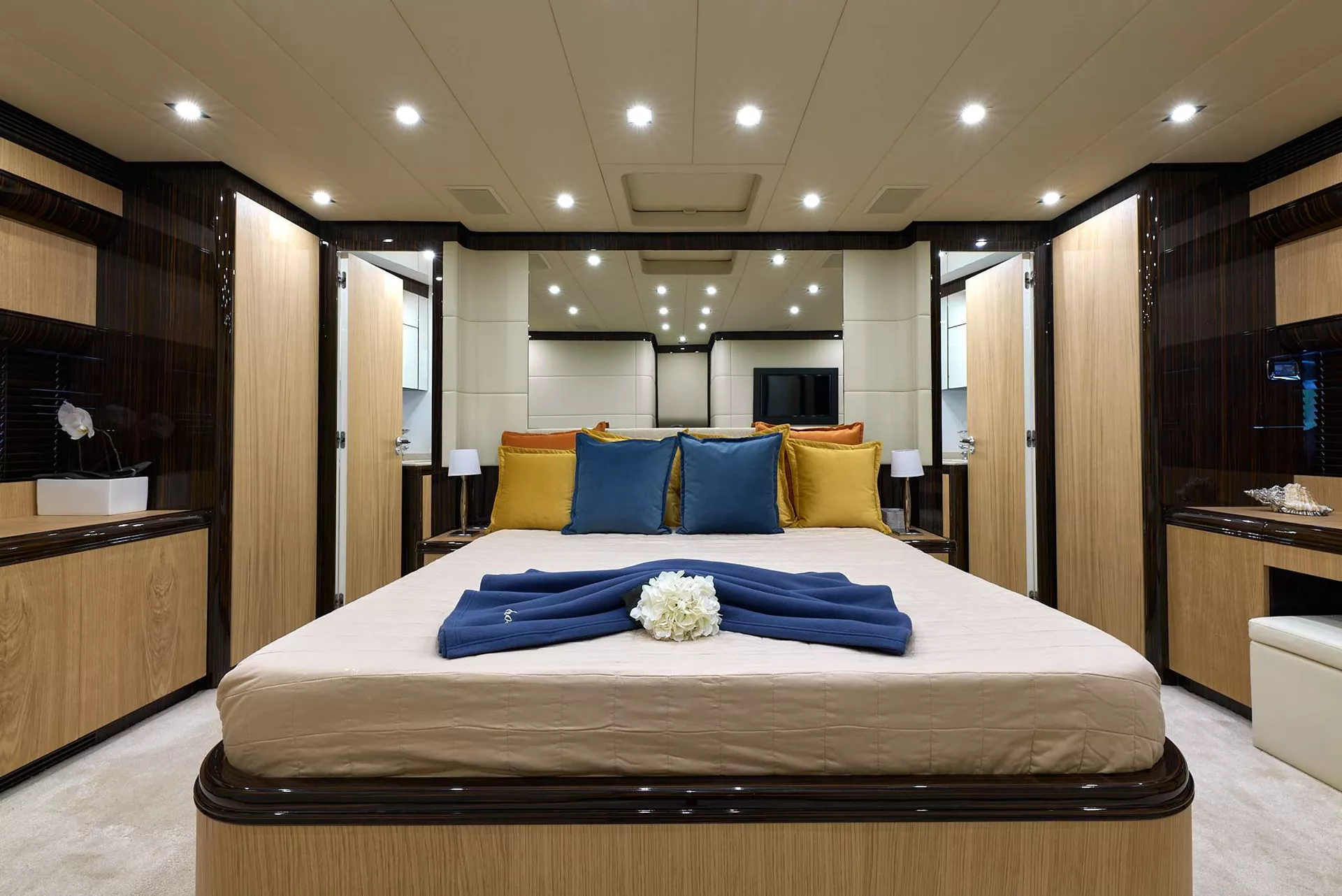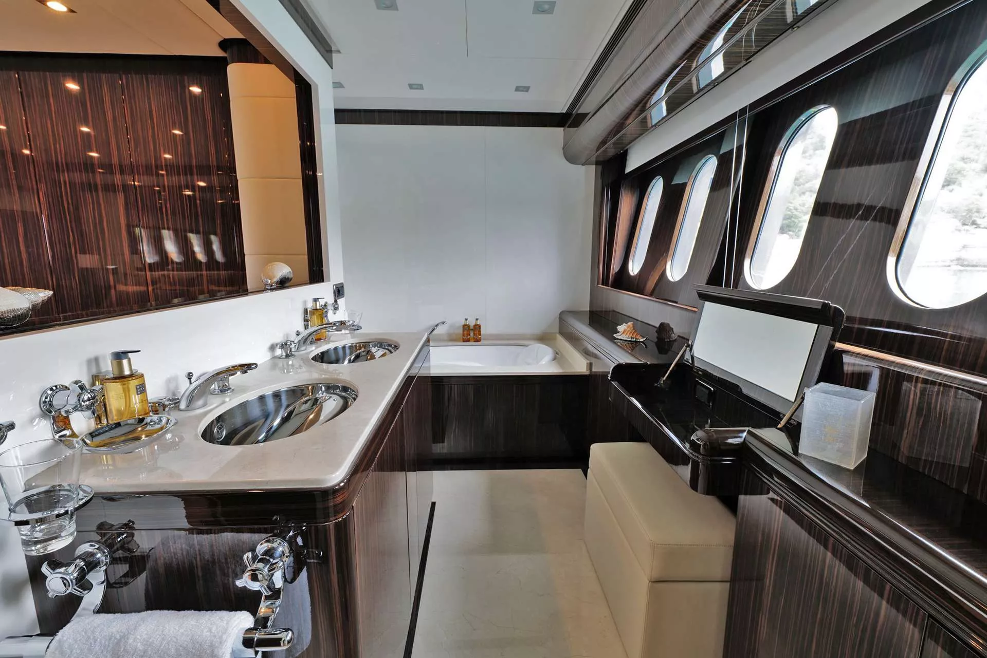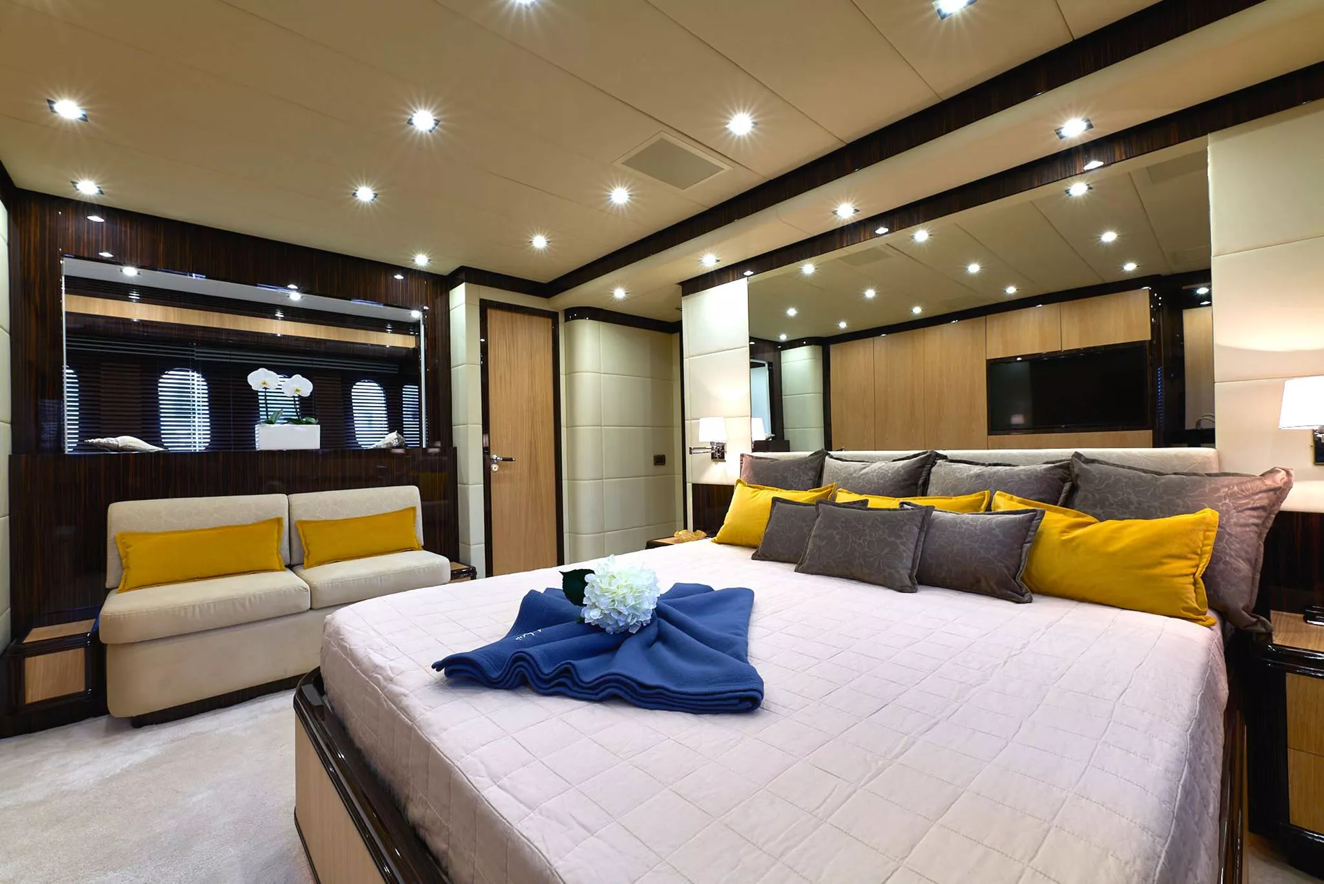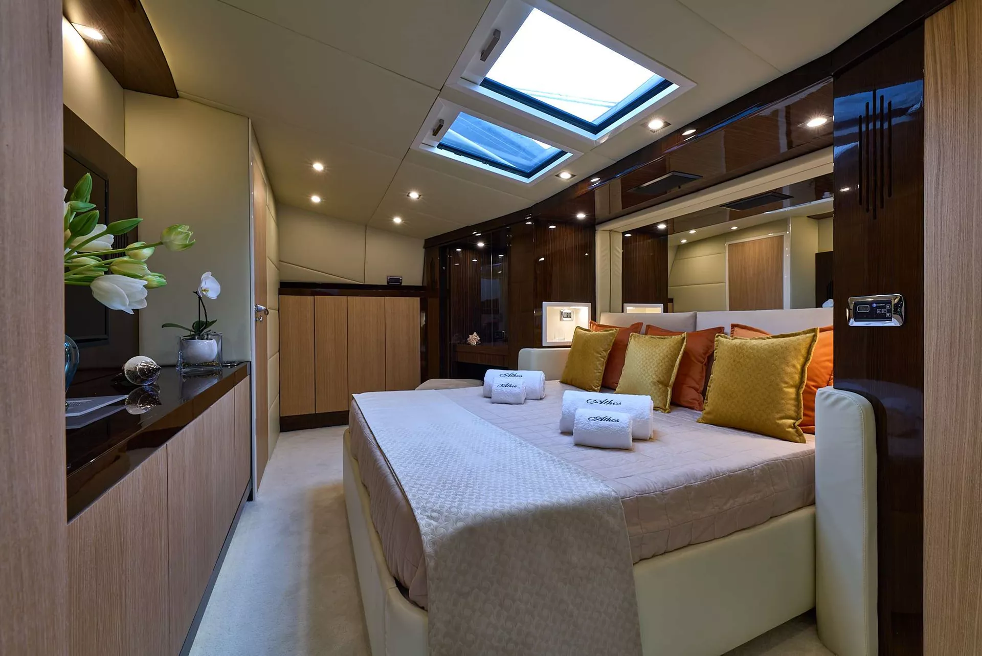 Athos offers a high-class accommodation for 11 guests: on the Lower deck the large and bright Owner's cabin, the VIP cabin and two comfortable cabins, one with a double bed and a Twin with a pullman bed. On the Main deck, a new large ensuite cabin with a double bed.