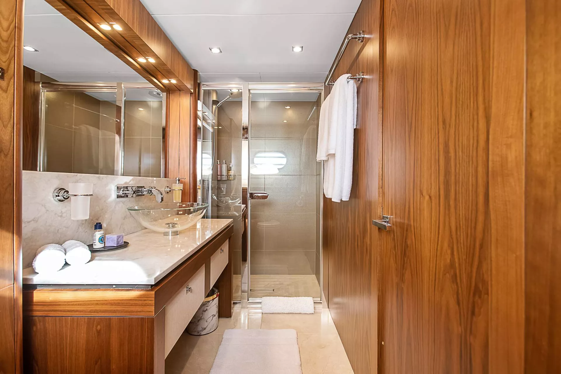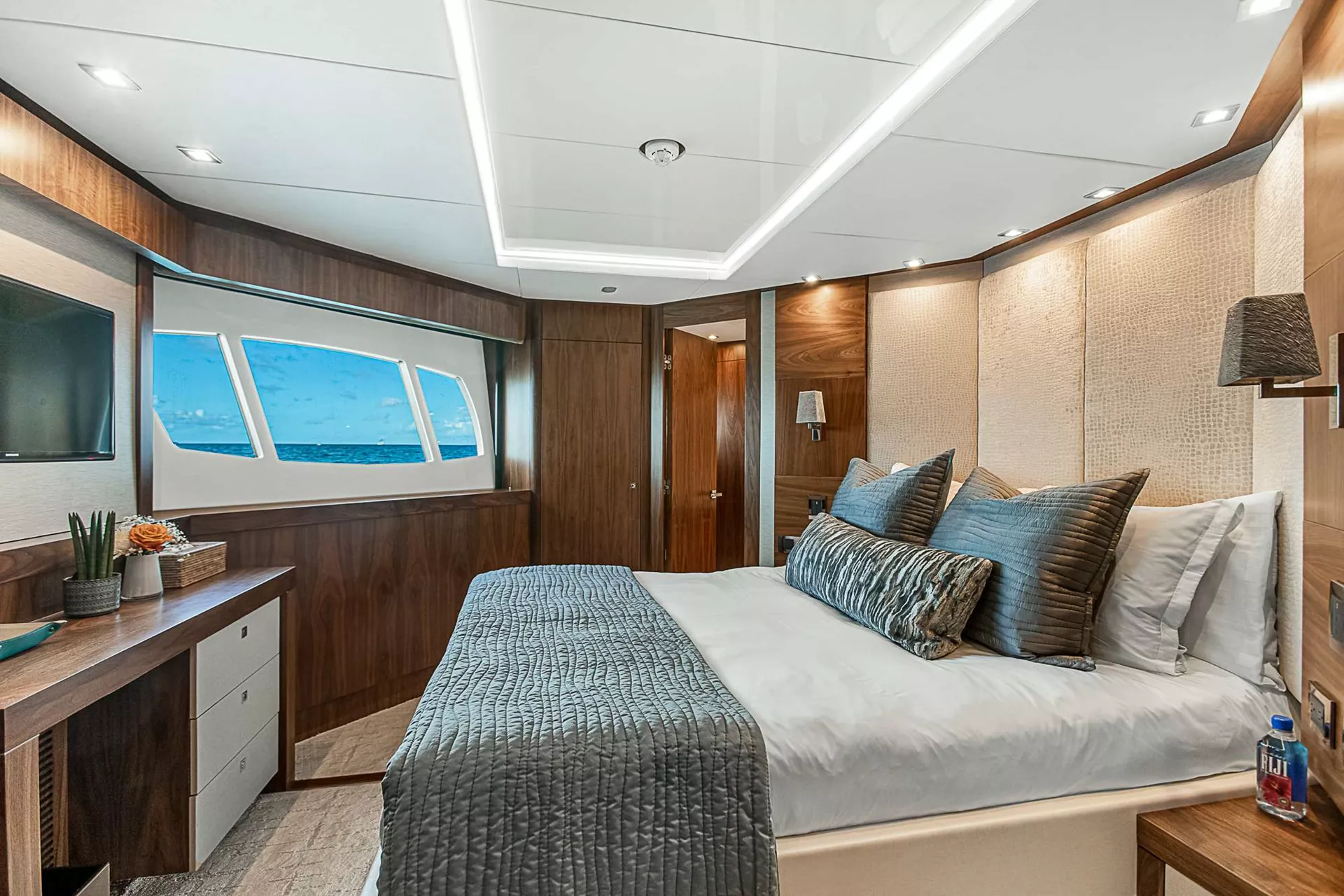 EVEREAST's generous interior layout sleeps up to 11 guests in 5 beautifully appointed staterooms, including a main deck master suite, 2 VIP staterooms and 2 twin/convertible staterooms on the lower deck. There is a great team of 7 crew onboard to ensure a relaxed charter experience.