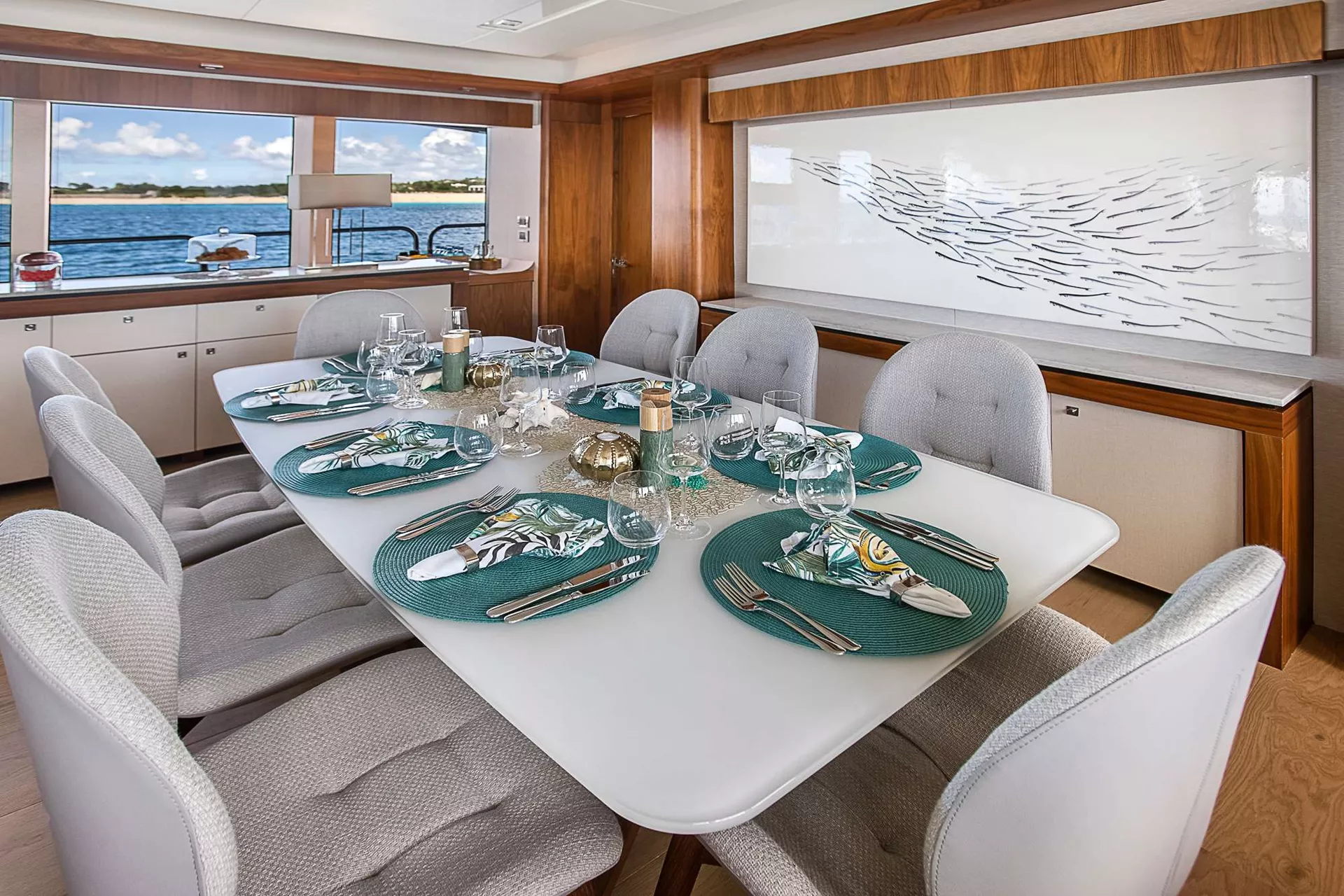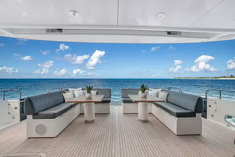 Her generous deck areas play host to a wide range of amenities, including an outdoor bar located on the sundeck, multiple alfresco dining options and a glass-fronted jacuzzi with retractable hood, offering far-reaching views of your surroundings as you relax and unwind. There is also ample space for lounging and relaxing in the bow as you soak up the rays or enjoy some quiet time as the sun sets. EVEREAST's impressive leisure and entertainment facilities make her the ideal charter yacht for entertaining with family and friends.
