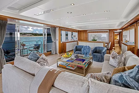 EVEREAST is an outstanding Sunseeker Sport built in 2013 and last refitted in 2022. The main salon has been upgraded to provide a homely and comfortable atmosphere, with folding balconies and sliding glass doors to both port and starboard. She really opens up, allowing maximum light and air into this area. The modern interior is sleek and elegant, incorporating large windows, American black walnut joinery, marble flooring and tops, and glass accents.