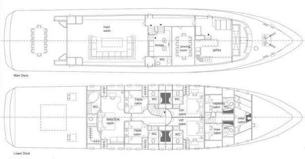 Two (2) Twin cabins + pullman bed each (up to 50kg)