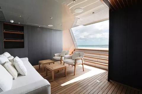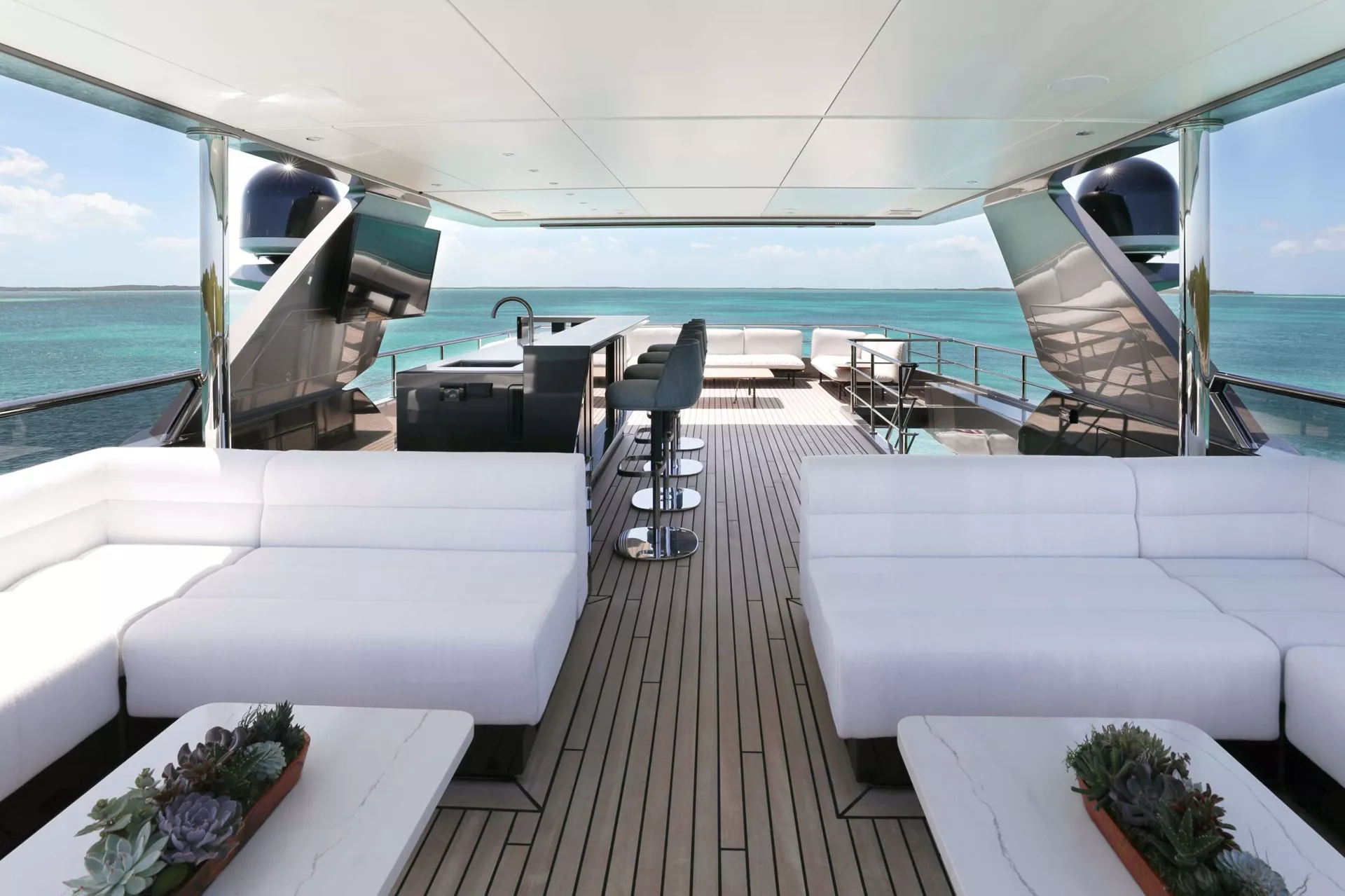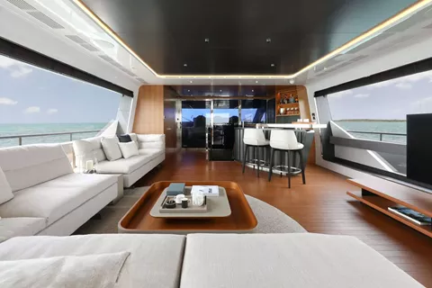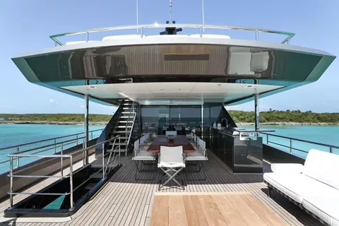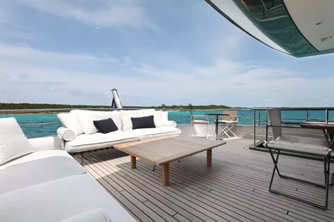 A SALT WEAPON hosts 5 staterooms to accommodate up to 10 guests. The master on the main deck features a King-sized bed, office space and his and her en sutie with adjoining shower. The remaining four staterooms are located below deck and comprise of 2 VIP's and 2 twin convertible staterooms, all with their own en suites.