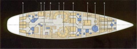 Amadeus is a 110 foot sailing yacht for charter that can accommodate 10/12 passengers. There is one large master stateroom and four additional cabins which are all air conditioned and have en suite bathrooms. Each stateroom is fully equipped with an entertainment center. There are two separate salons and a full dining room. The aft deck is fully covered and has seating for all guests to dine outdoors. Forward of the cockpit is a lovely cushioned area for sunning. The fore deck has an unusual pool on deck and swimming in the sea is made accessible by a large swim aft platform. Recreation Equipment Waterskis, windsurfers, scuba diving equipment, compressor, snorklling and fishing equipment