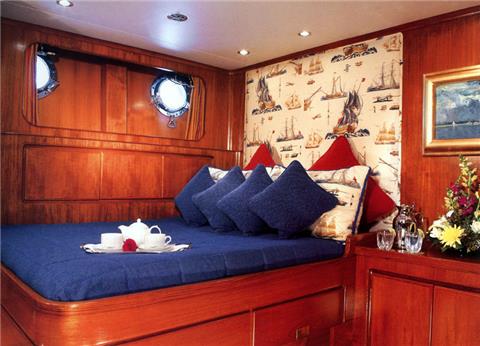 This luxury sailing yacht for charter in Greece offers one full beam Master cabin, one VIP cabin and two twin cabins each with an extra bunk bed. En suite facilities in all cabins.