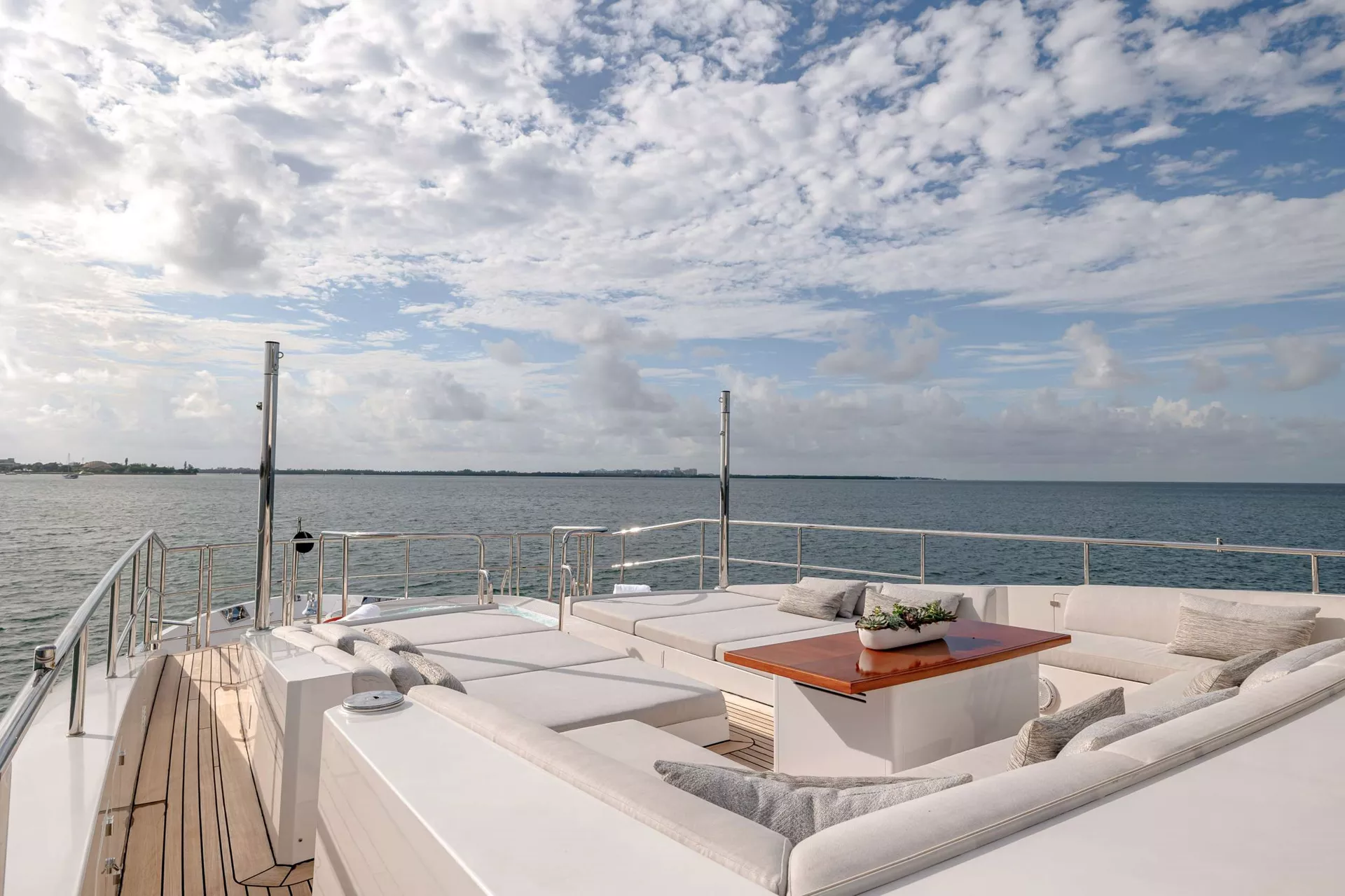 She is the perfect platform for entertaining and relaxing, with expansive exterior space and two on-deck Jacuzzis – one on the sun deck and one at the bow, which is unheard of for a yacht of this size. With multiple areas for formal and informal dining, sunbathing and relaxing, or having drinks with close friends, the possibilities are endless on PATIENCE with her versatile layout.