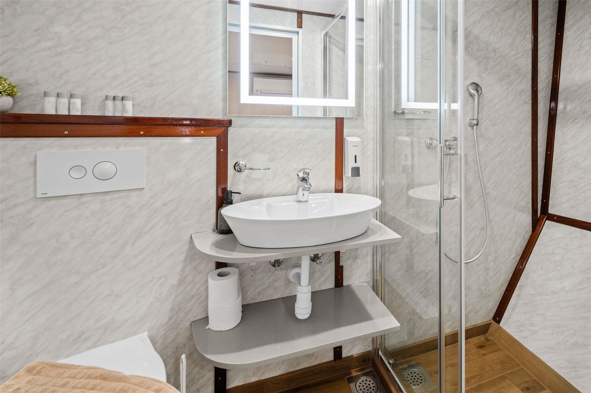16 double or twin-bedded guest cabins, all en-suite, air conditioned and fully equipped (TV, Safe box, Wi-Fi, Hair dryer, Cupboard & Wardrobe cabinet)