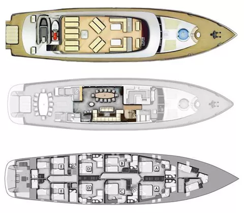 Accommodation is over 5 double cabins and 1 twin suite. From 2024, the twin will be convertible to a double to allow for 6 double cabins.