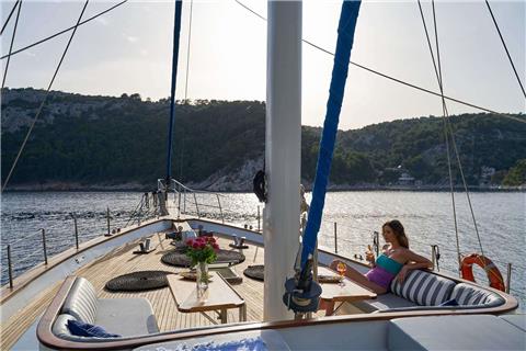 Gulet Fortuna is 33 meters long yacht that will astonish you with her excellent sailing performances that are an amazing addition to your cruising vacations in Croatia. Her sails are functional and her crew will provide you with smooth sailing with no sound of engine. You can always give them a hand in their performances or just relax and enjoy. Gulet Fortuna has been completely refitted and improved for the season 2016. in order to provide higher standards of accommodation. She can comfortably accommodate up to 12 guests in 6 cabins. Being a large yacht, her decks provide plenty of space for outdoor living.