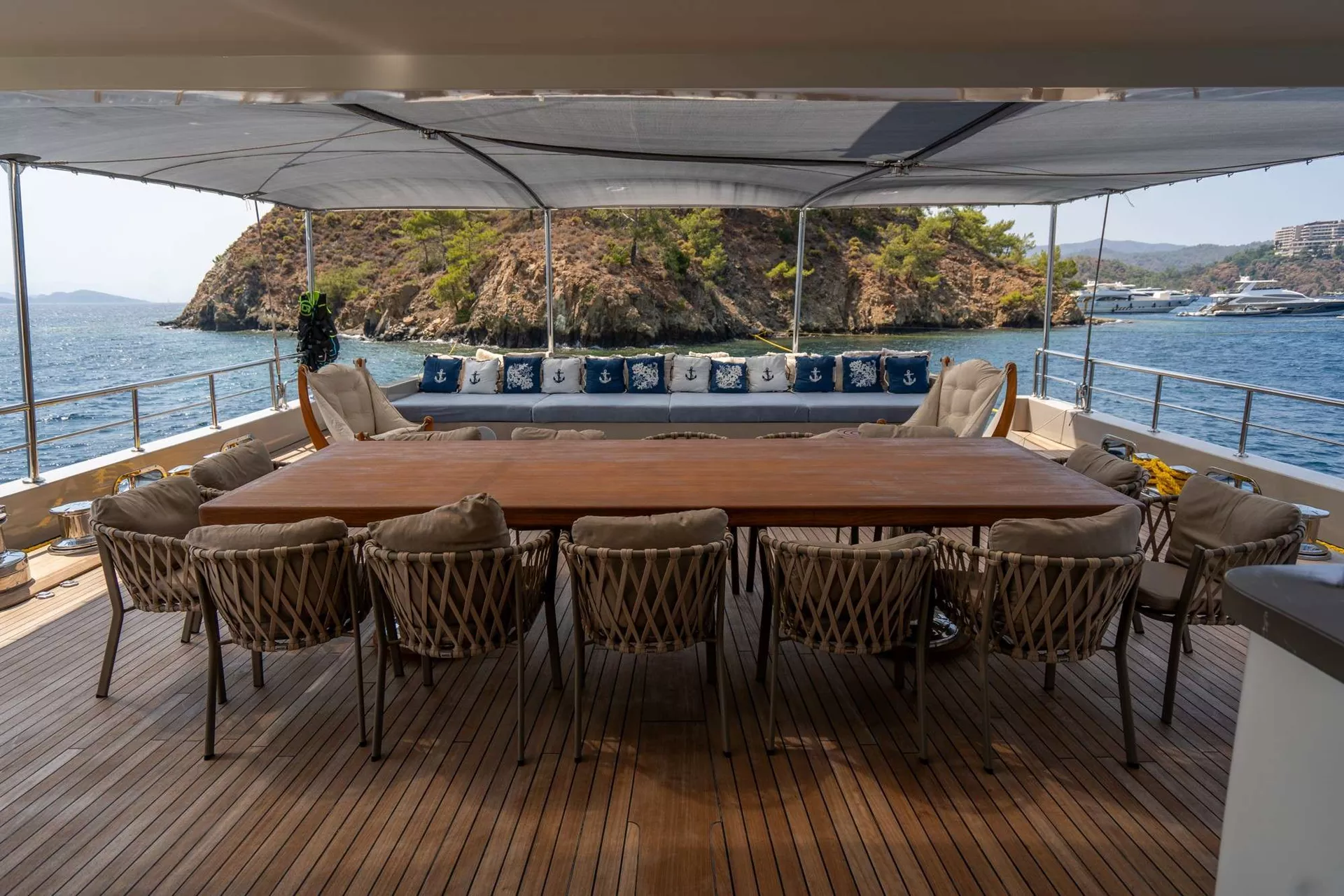 Included: hire of the yacht, crew, port fees in Turkish waters (private marinas not included), 4 hours/day fuel for main engines, fuel for generators.
