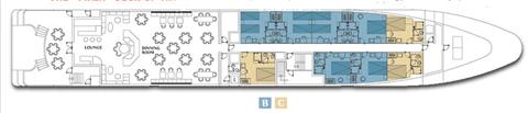 Stabilizers, 3 passenger decks, maximum 49 guests in 25 cabins, 16-18 crew members, bar, lounge, dining rooms (indoor & outdoor), sun deck with loungers & chairs, air-conditioned, TV & audiovisual equipment in main lounge, Internet & email service, special meals programs, swimming platform, water sports equipment, mini spa.