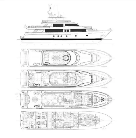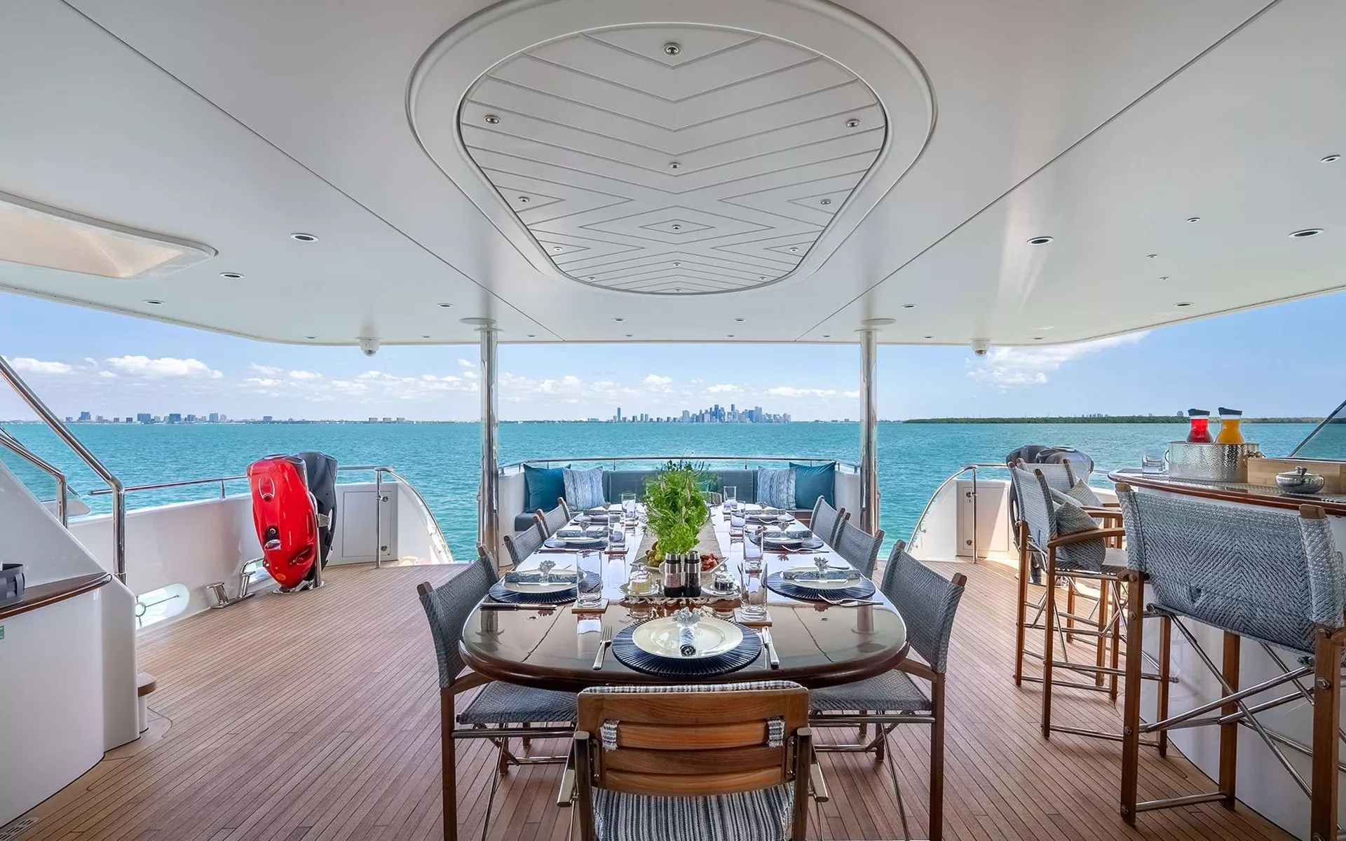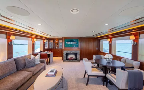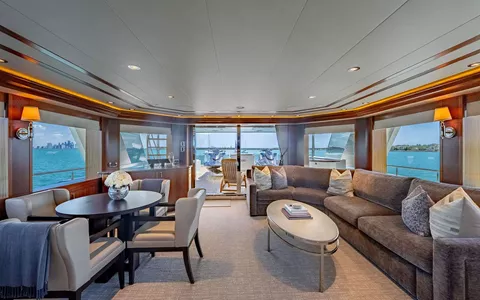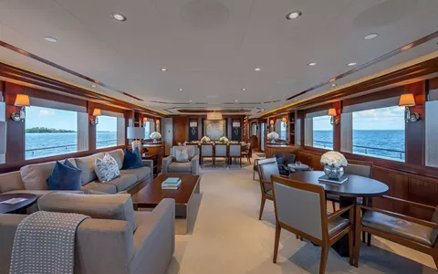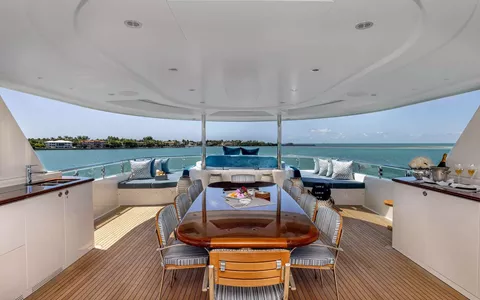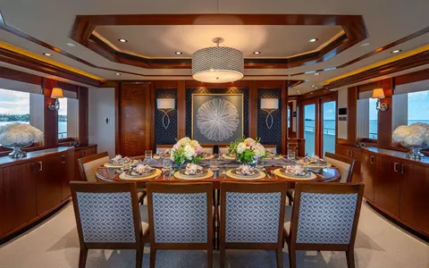 The main salon and dining is socially inviting, one of pure elegance and open plan style with formal dining for 10. A remodeled, custom designed professional galley is positioned privately to portside and with side access for crew.