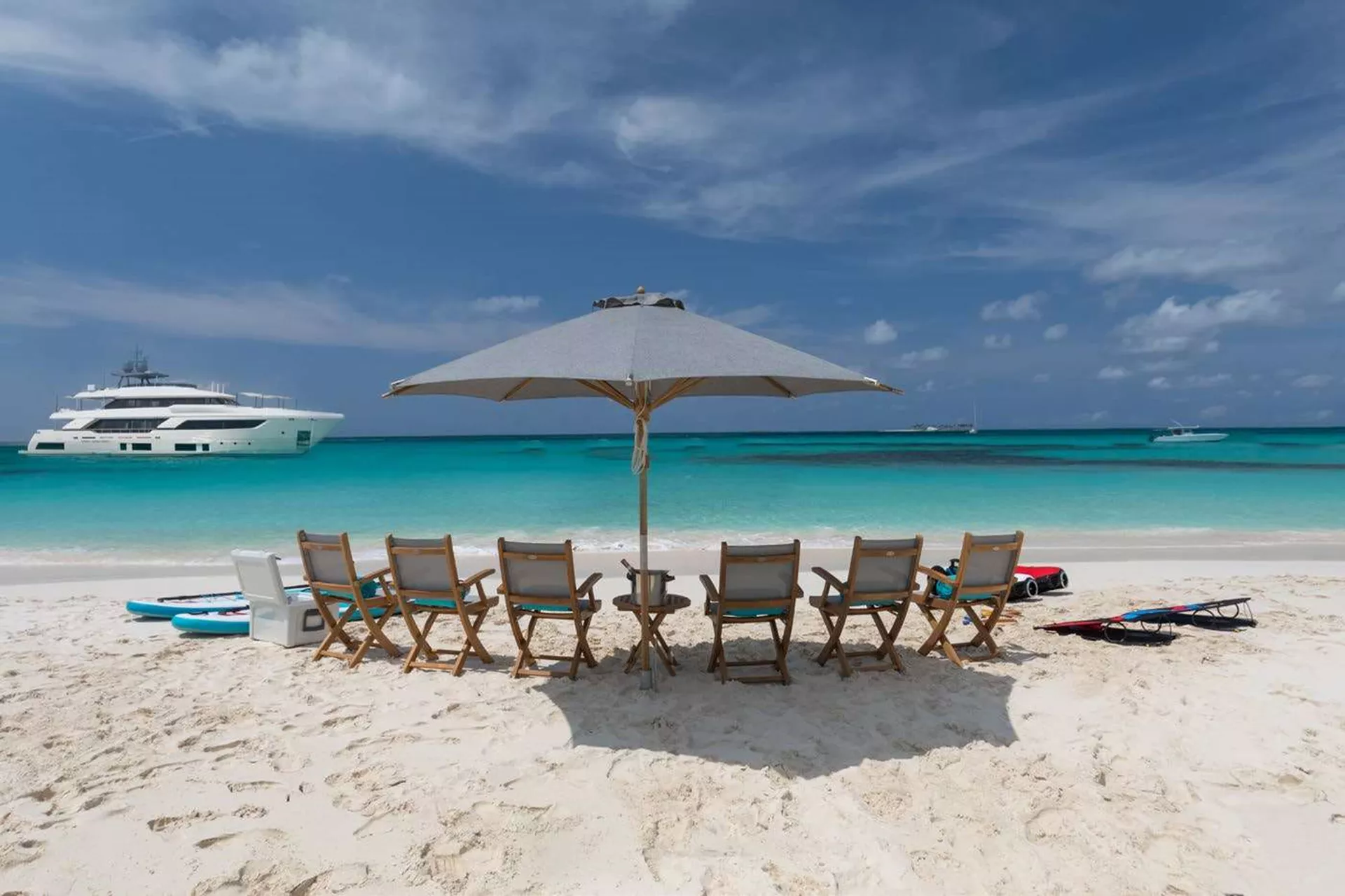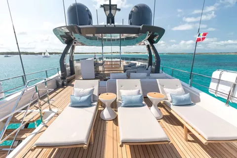 On deck, EROS invites guests to indulge in a range of exquisitely designed spaces, from the sun-drenched sundeck with its jacuzzi and bar to the elegant bridge deck dining area and the inviting beach club just steps from the sea. For those with a sense of adventure, the yacht offers an extraordinary selection of water activities. Whether you're zipping across the water, diving beneath the surface, or enjoying a relaxing paddle, the array of onboard toys and equipment ensures there’s never a dull moment. With endless ways to explore and unwind, and a crew of seven dedicated to delivering impeccable service, EROS is the perfect setting for an unforgettable escape on the water.