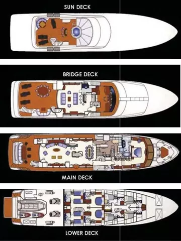Audio & video systems are on demand throughout the yacht keeping her up to date with modern trends, including New Apple TV system, I-pod docking stations throughout, SKY TV, flat screen televisions in all cabins and lounges, portable TV + plug in points at all external seating areas including the sundeck, Jacuzzi and barbecue.