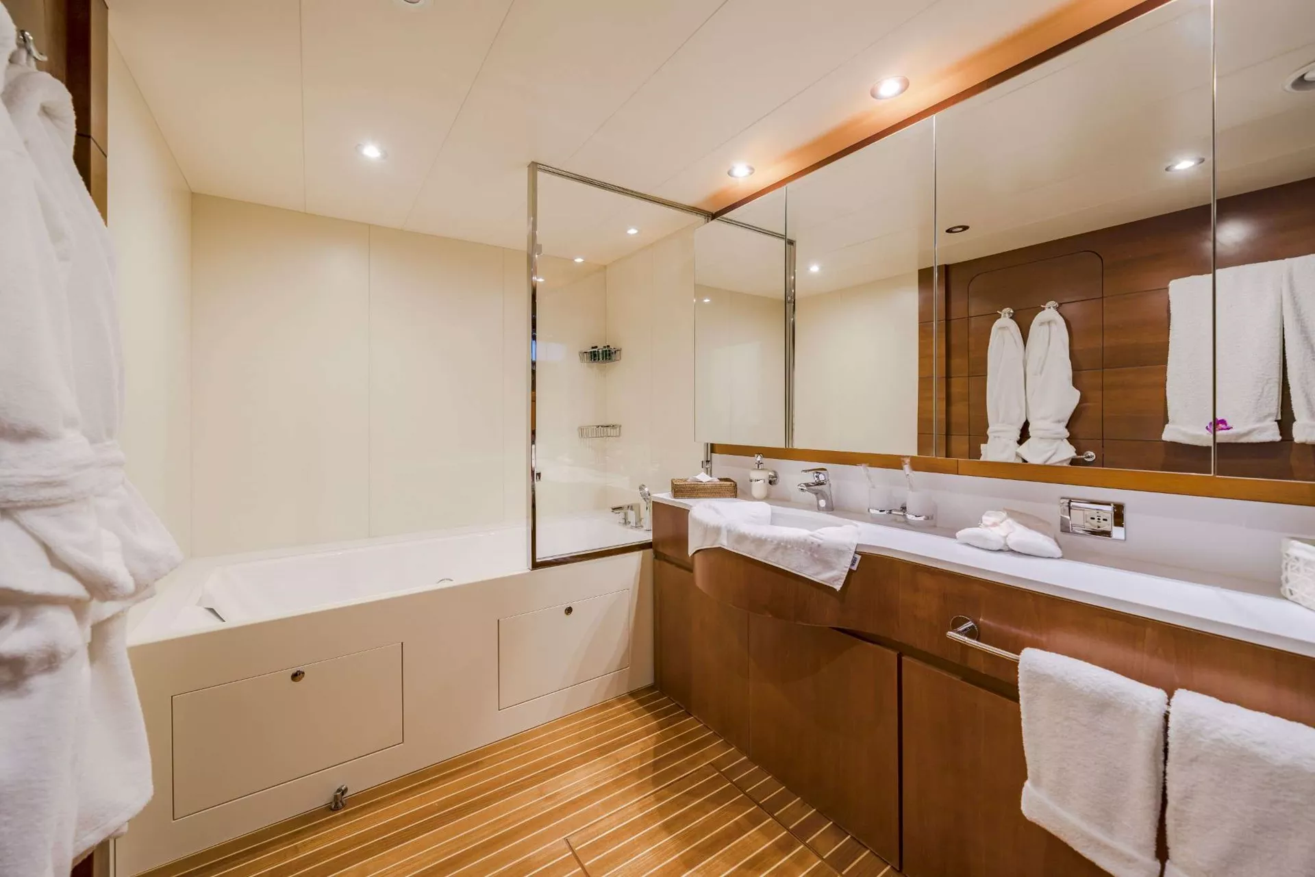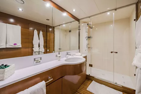 FIORENTE accommodates up to 10 guests in five beautifully appointed cabins, including three elegant double staterooms and two comfortable twin cabins. Each cabin provides the perfect blend of luxury and comfort, ensuring guests enjoy a serene and rejuvenating stay. Whether you’re cruising along the French Riviera or exploring the hidden gems of Corsica, FIORENTE promises a luxurious retreat with all the modern conveniences one could wish for.