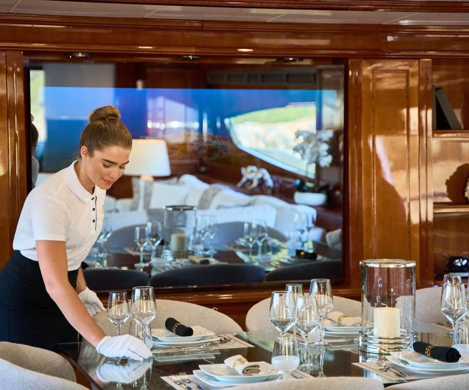 Marina is a dedicated and detail-oriented stewardess with a strong background in hospitality and luxury service. She brings a wealth of experience in high-end guest relations, fine dining service, bartending, and meticulous housekeeping. Her expertise in table settings and interior maintenance ensures that every detail of the onboard experience is handled with precision and elegance.