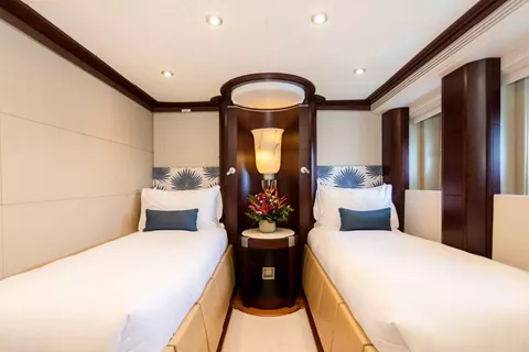 1 x Twin Bed Stateroom with ensuite. Located to port side, with bed heads facing toward the bow.