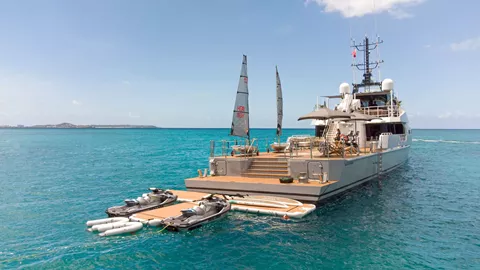 From her rugged exterior to the custom art on her bow, it’s immediately clear that BAD COMPANY SUPPORT is a yacht built for adventure. With a proven wave-piercing Sea Axe Bow design, 120m² (1300 sq ft) of deck space and a bright, welcoming interior BAD COMPANY SUPPORT has the versatility to be used for just about anything. Capable as an adventure yacht or a support vessel for off-grid operations, this yacht is a true powerhouse.
