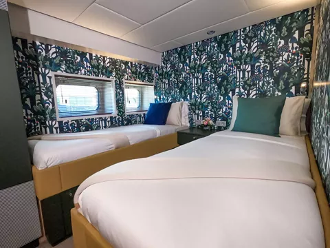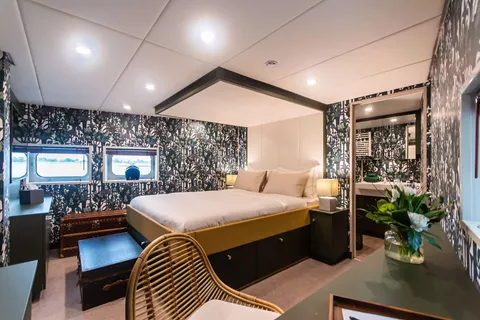Providing accommodations for up to 6 guests and 7 crew, BAD COMPANY SUPPORT offers vibrant and comfortable interior living spaces. Her main deck salon is light and colorful with large windows to help guests relax after a busy day on the water. The main deck is home to three guest cabins, a cabin to port and starboard, both with two twin beds, and a large cabin forward with a queen bed. All the guest cabins are fitted with their own ensuite along with plenty of storage space.
