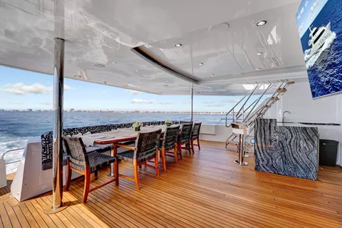 Real Summertime, built in 2000 and underwent an amazing multi-million-dollar refit in 2022, which exudes modern elegance. Its meticulously designed decks harmoniously blend indoor and outdoor living, creating the perfect environment for a luxury yacht charter. The sophisticated interior, masterfully designed by SW Designs out of Miami FL, radiates modern refinement, comfort, and impeccable aesthetic sensibility.