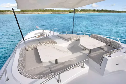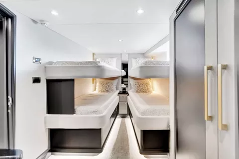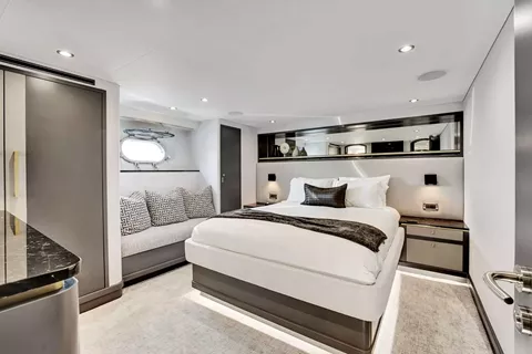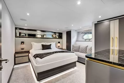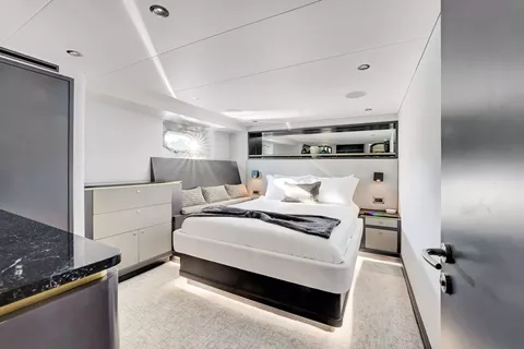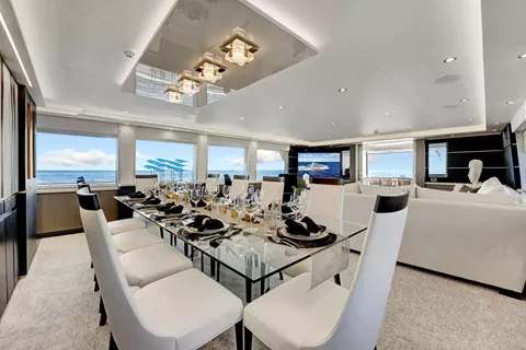 More than just a vessel, Real Summertime offers an immersive experience tailored to its guests' desires. With accommodation up to 12 guests across 5 staterooms, and a dedicated crew of 6, this yacht offers a relaxed and opulent charter experience. Indulge yourself with the third level jacuzzi, positioned against awe-inspiring scenery, or admire the underwater lights that add a touch of spectacle and style to the beach club in the evenings. For delightful entertainment, the second level outdoor cinema allows you to enjoy your favorite movies under the stars. The ideal spot for sailing would be our spacious bow seating area, offering ample space for lounging and soaking up the sun. Rest assured, if shade is preferred, our attentive crew can easily set up the Bimini shades to provide the perfect amount of coverage. Stay connected with Starlink connectivity, or experience uninterrupted comfort. Rest assured, Real Summertime ensures a seamless and luxurious journey.