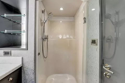 Master Stateroom: King Bed, full beam, on-deck. Ensuite bathroom has a large soaking bathtub in addition to a grand shower with a rain head.