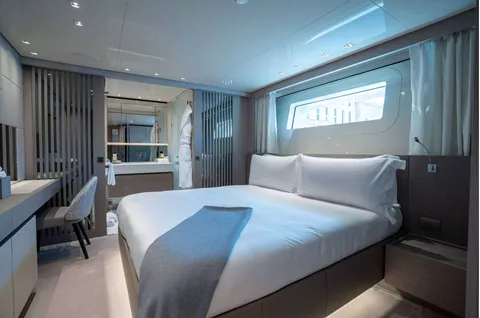 The Master Cabin is full beam and located forward of the Main Deck, with a King-size bed, Samsung Smart TV 128cm, Fold out window terraces. The ensuite has a separate shower, toilet and his and her sinks.