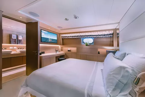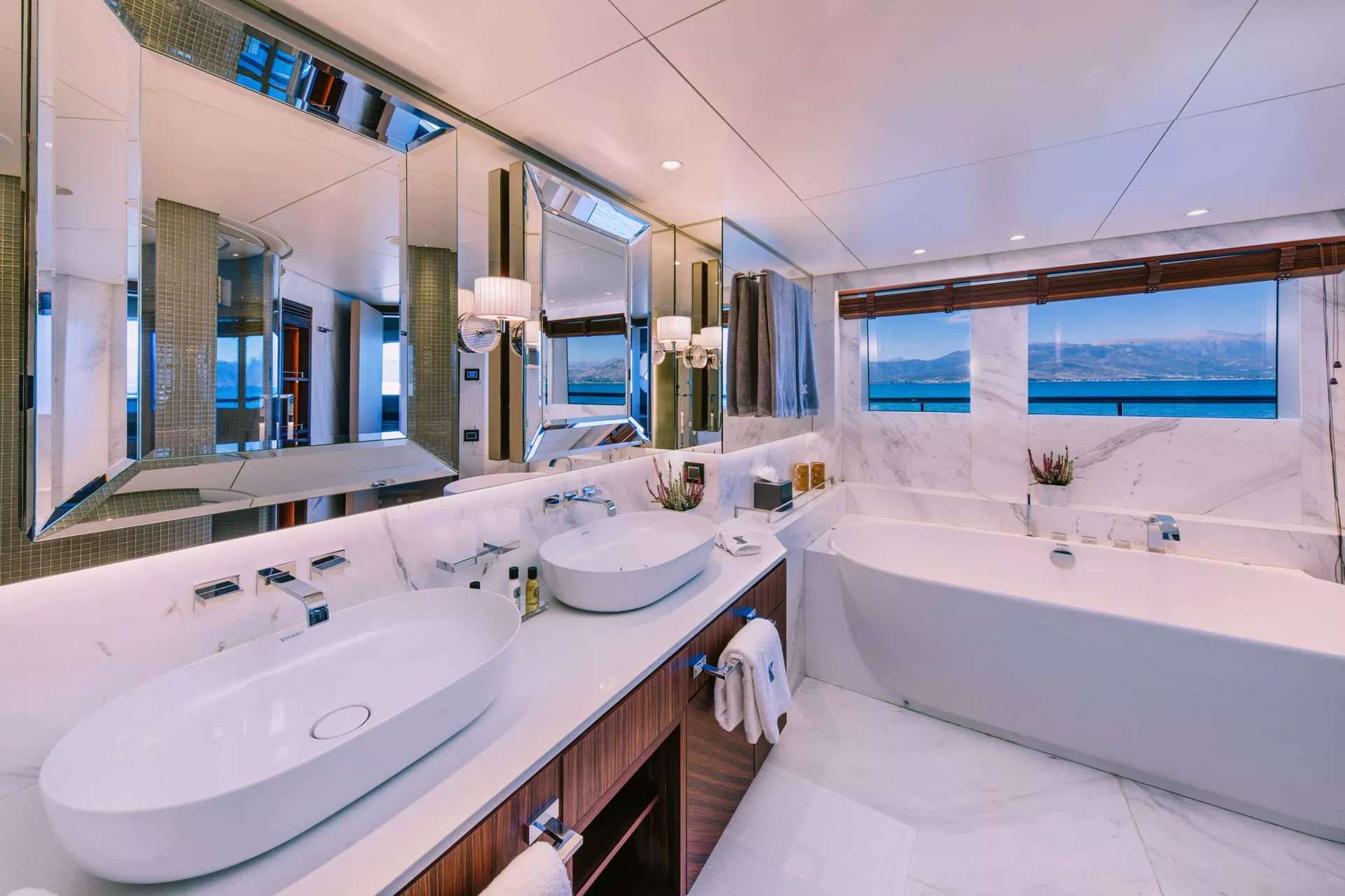 1 x Master Suite located on the main deck forward - walk-in closet - en suite facilities with double sink, tub and shower
